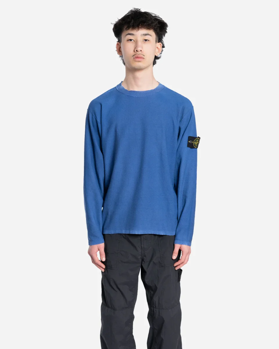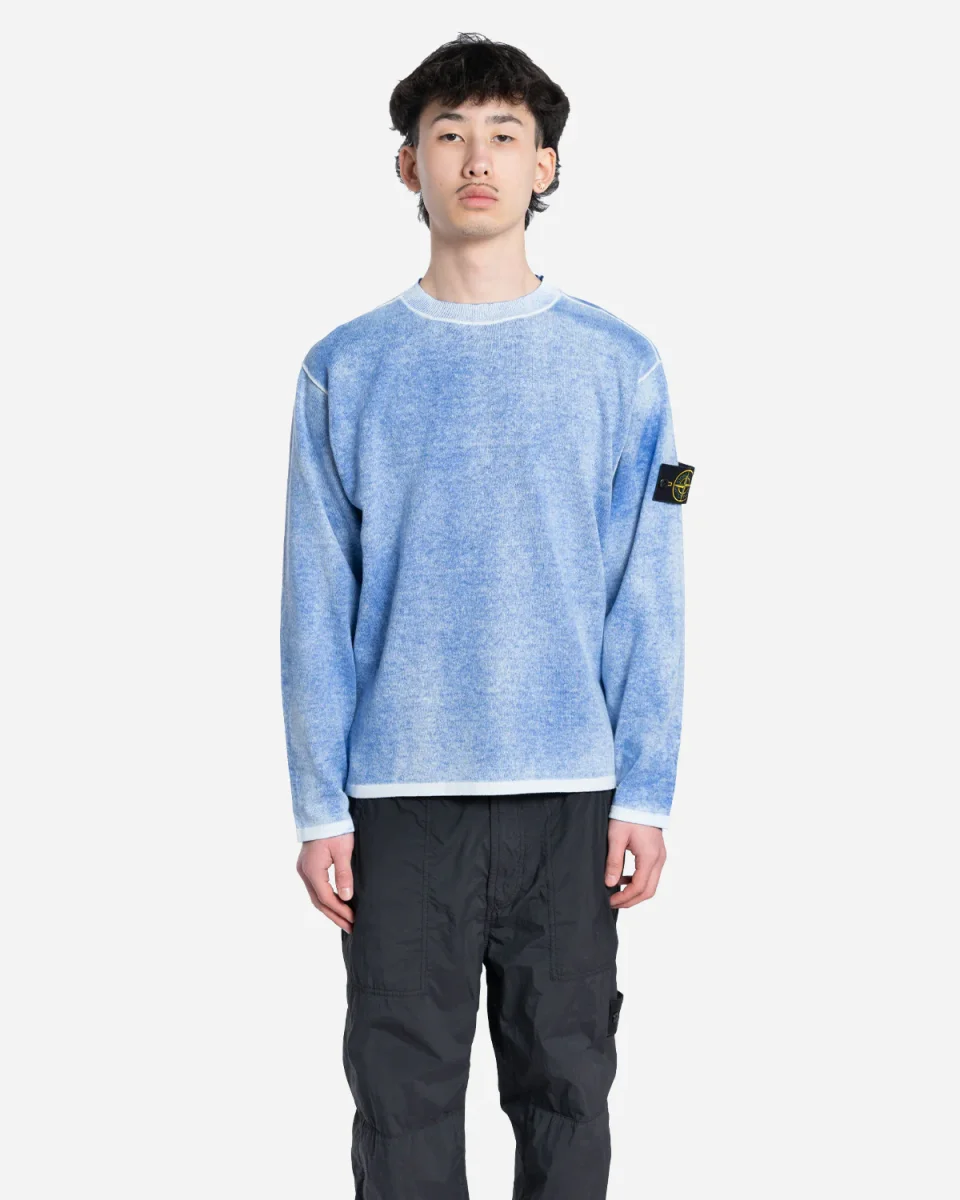 Pull ras-du-cou en coton biologique brut, léger et filé à la main avec intérieur pulvérisé à l’aérographe.
