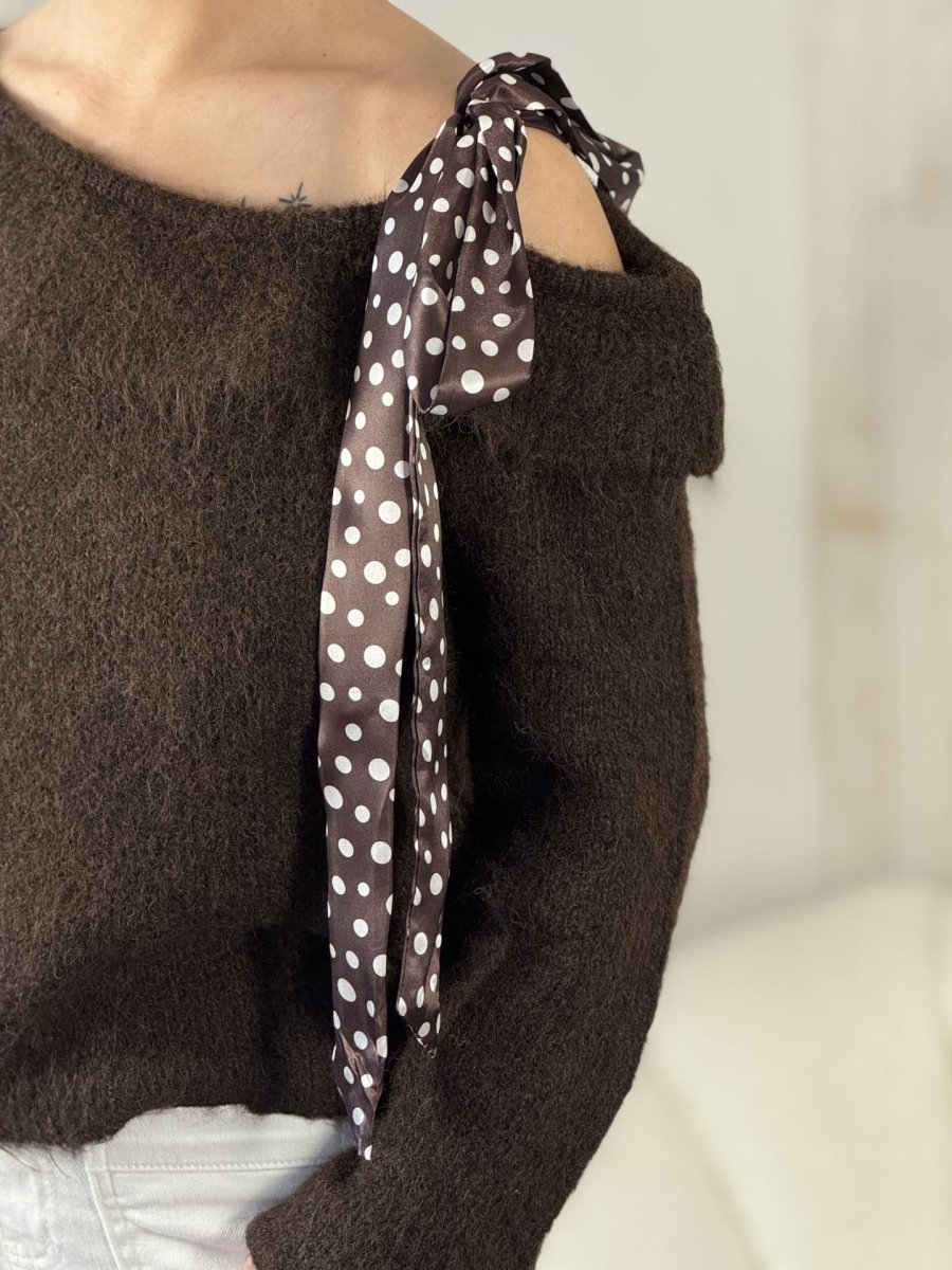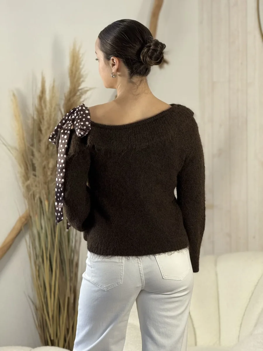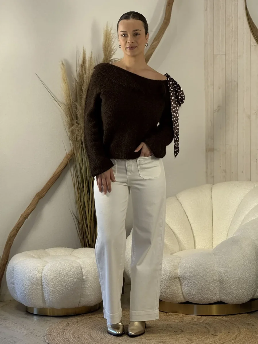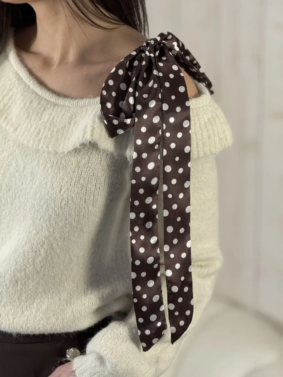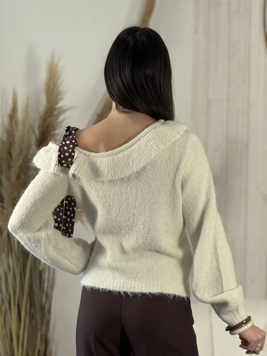 - PULL col claudine À ML doux – fantaisie ruban satin pois blanc