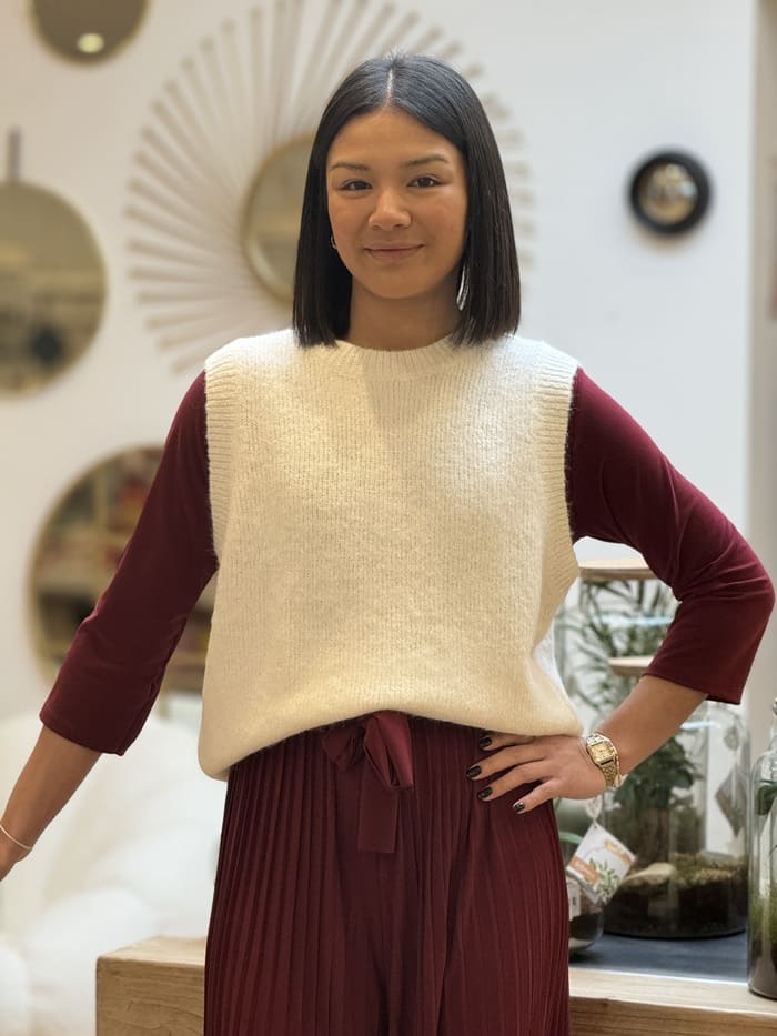 Pull SANS MANCHE COL ROND Taille : Mathilde mesure 1m65. Elle porte la taille S/M pour ce modèle. Justine mesure 1m69. Elle porte la taille S/M pour ce modèle. Taille : S/M (36-38) – M/L (38-40) Composition & entretien : 45% ACRYLIQUE 37% POLYETSER 10% LAINE 8% MOHAIR Lavage à la main conseillé Besoin d’un […]