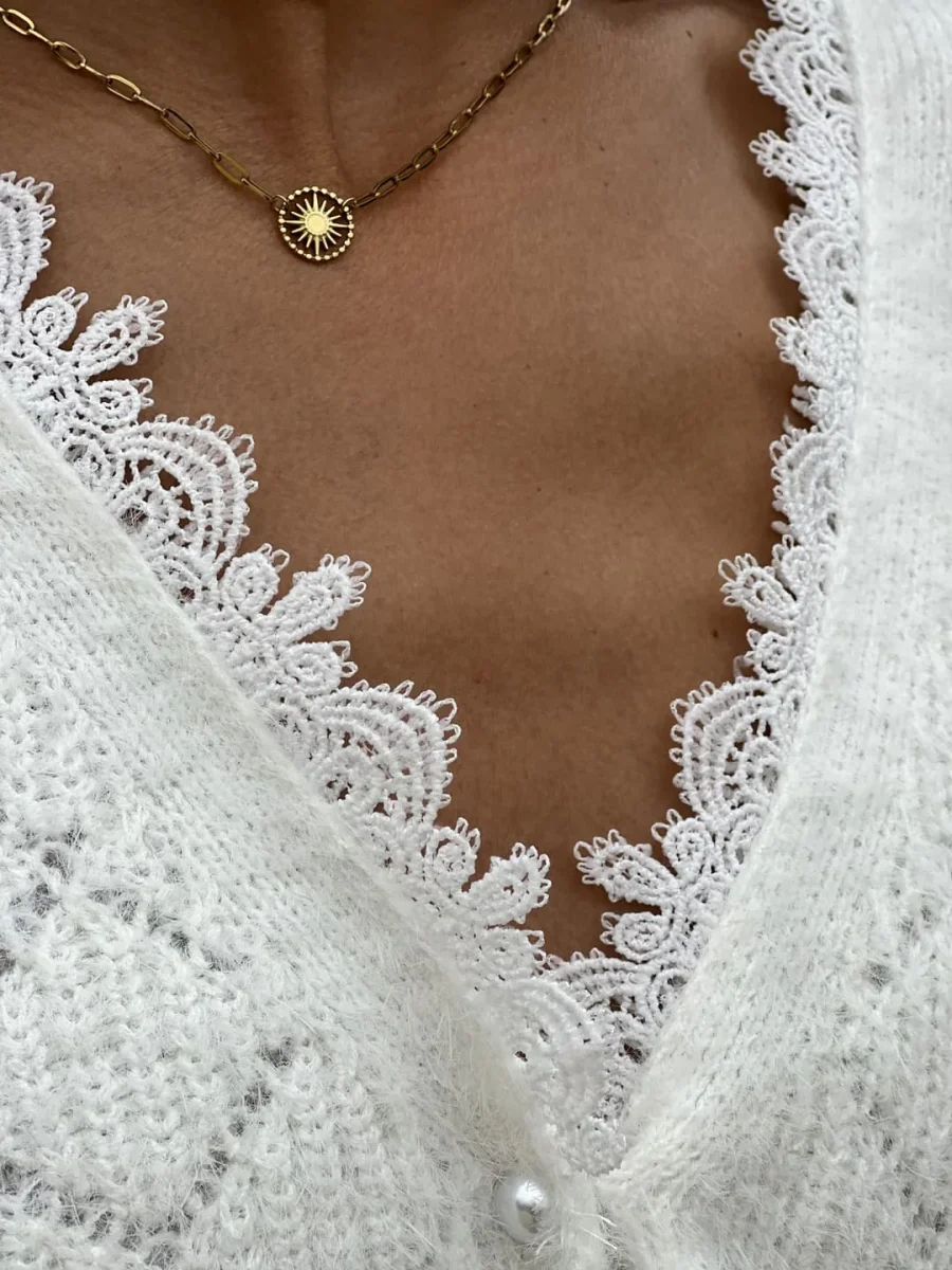 - PULL À ML COL V DENTELLE + PETITS BOUTONS