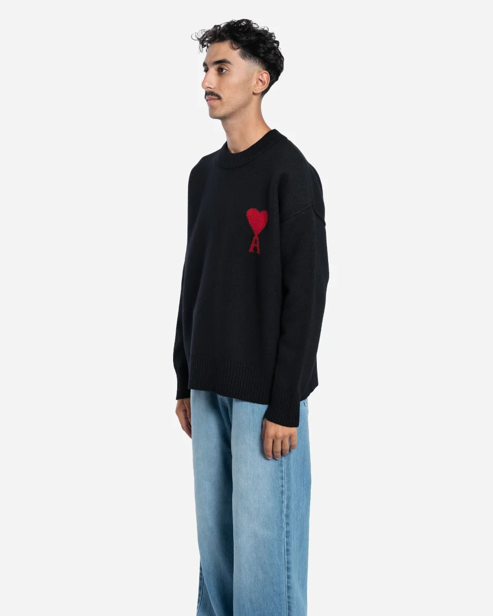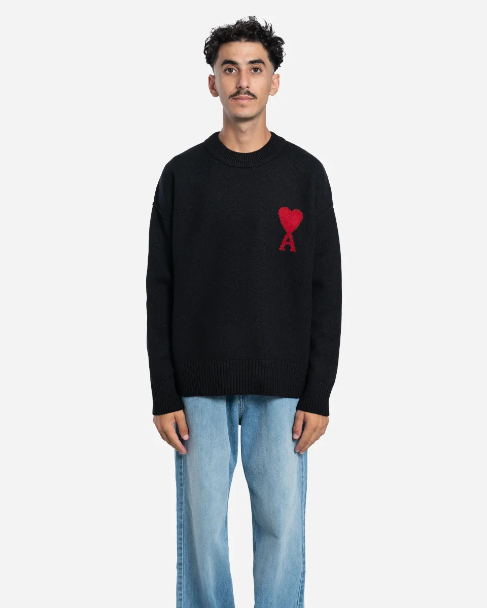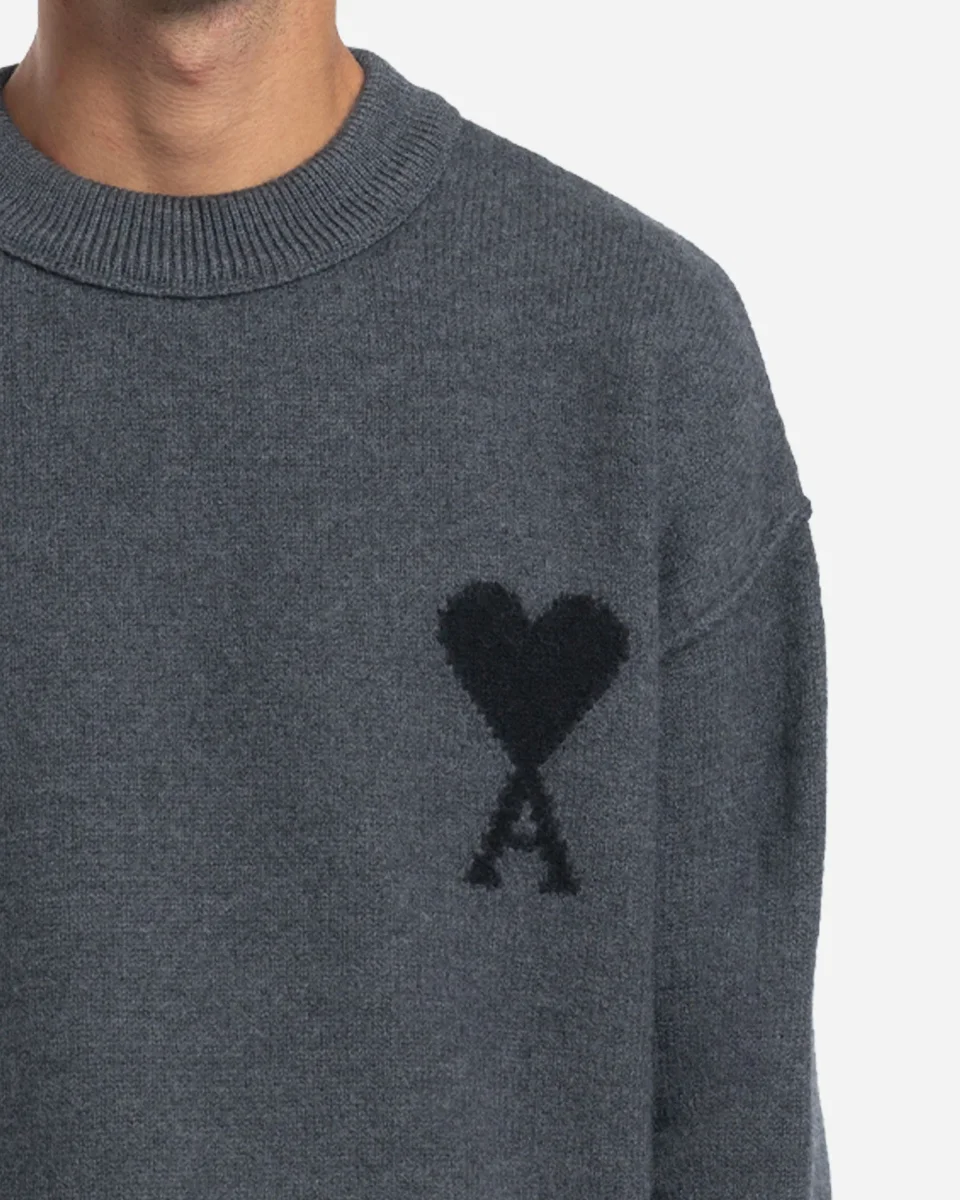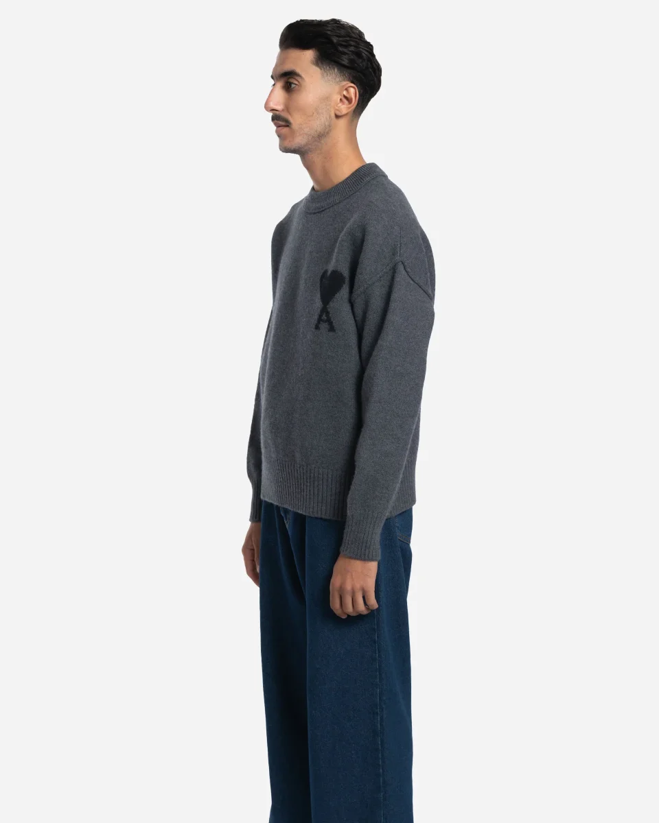 Pull en laine mérinos feutrée à col rond, orné du logo Ami de Coeur tricoté sur la poitrine. Ce modèle unisexe à la coupe simple est fabriqué au Portugal.
