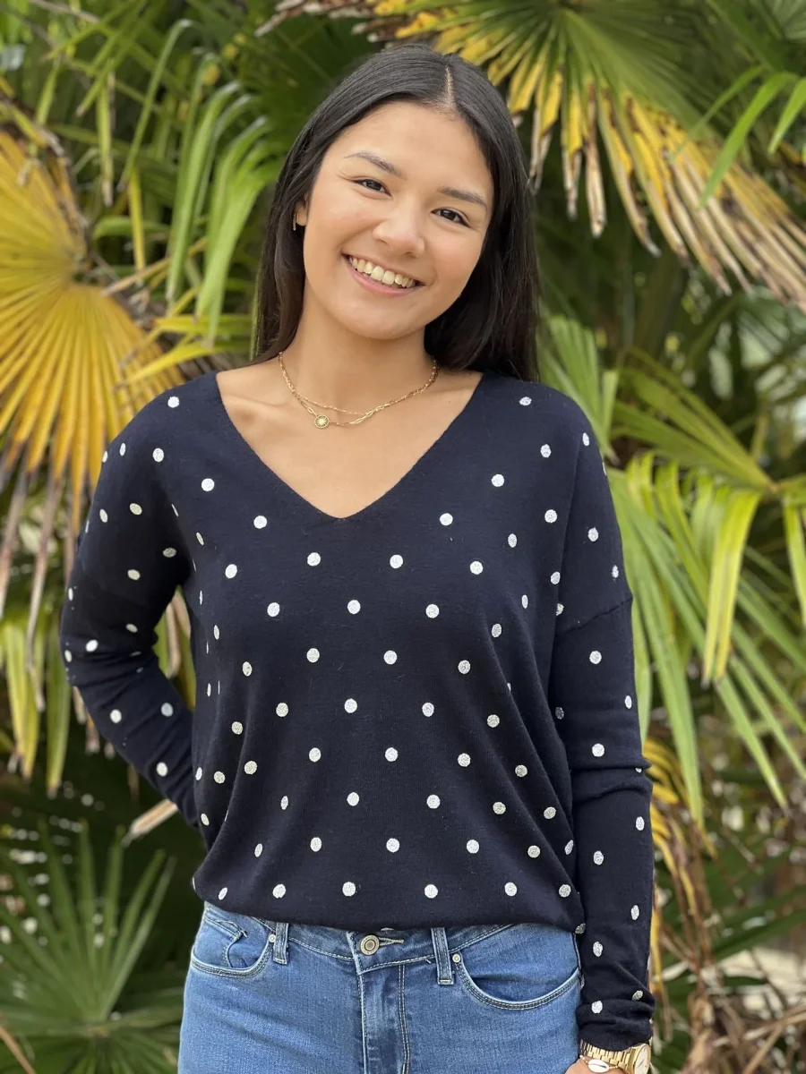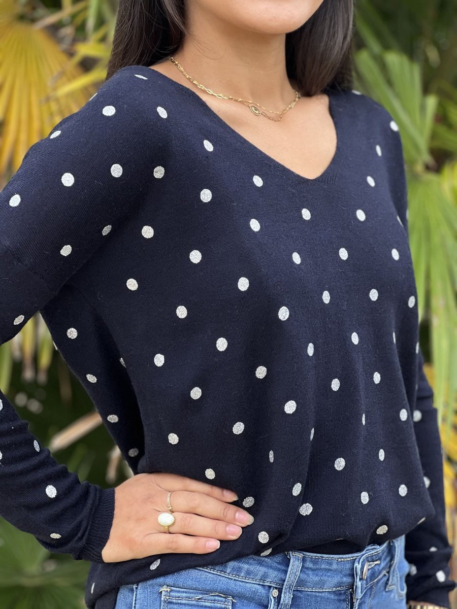 Pull à ml col v imprimé pois Taille : Mathilde mesure 1m65, Justine mesure 1m69. Elles portent la taille Taille unique pour ce modèle. Taille : Taille unique Convient de la taille 36 à 42 Composition & entretien : 8% LAINE 20% ACRYLIQUE 00% NYLON 52% POLYESTER Lavage à la main conseillé Besoin d’un conseil […]
