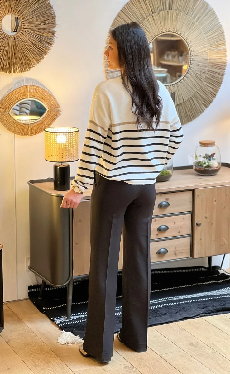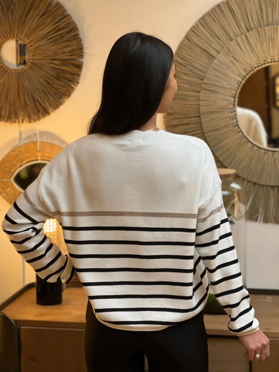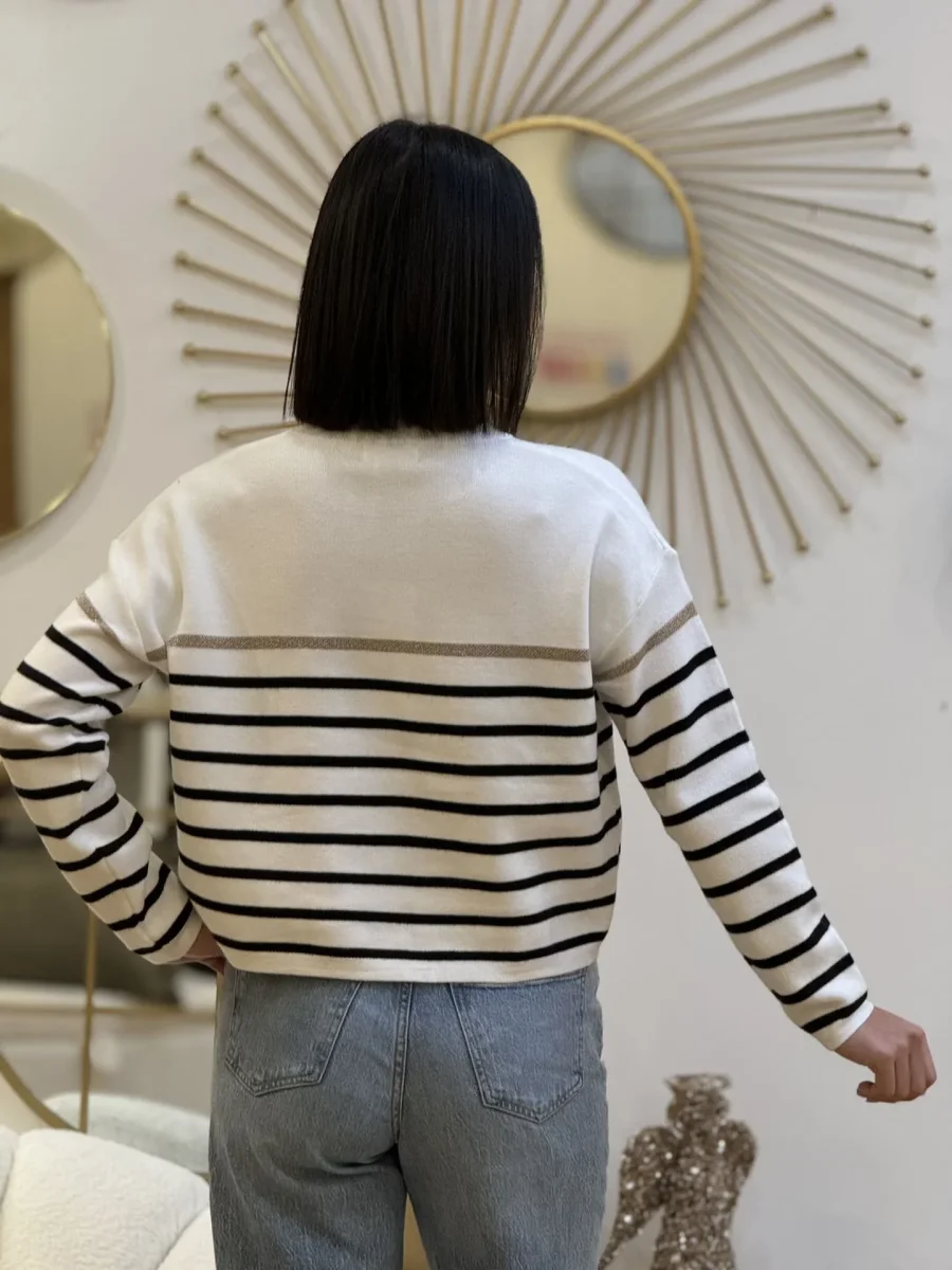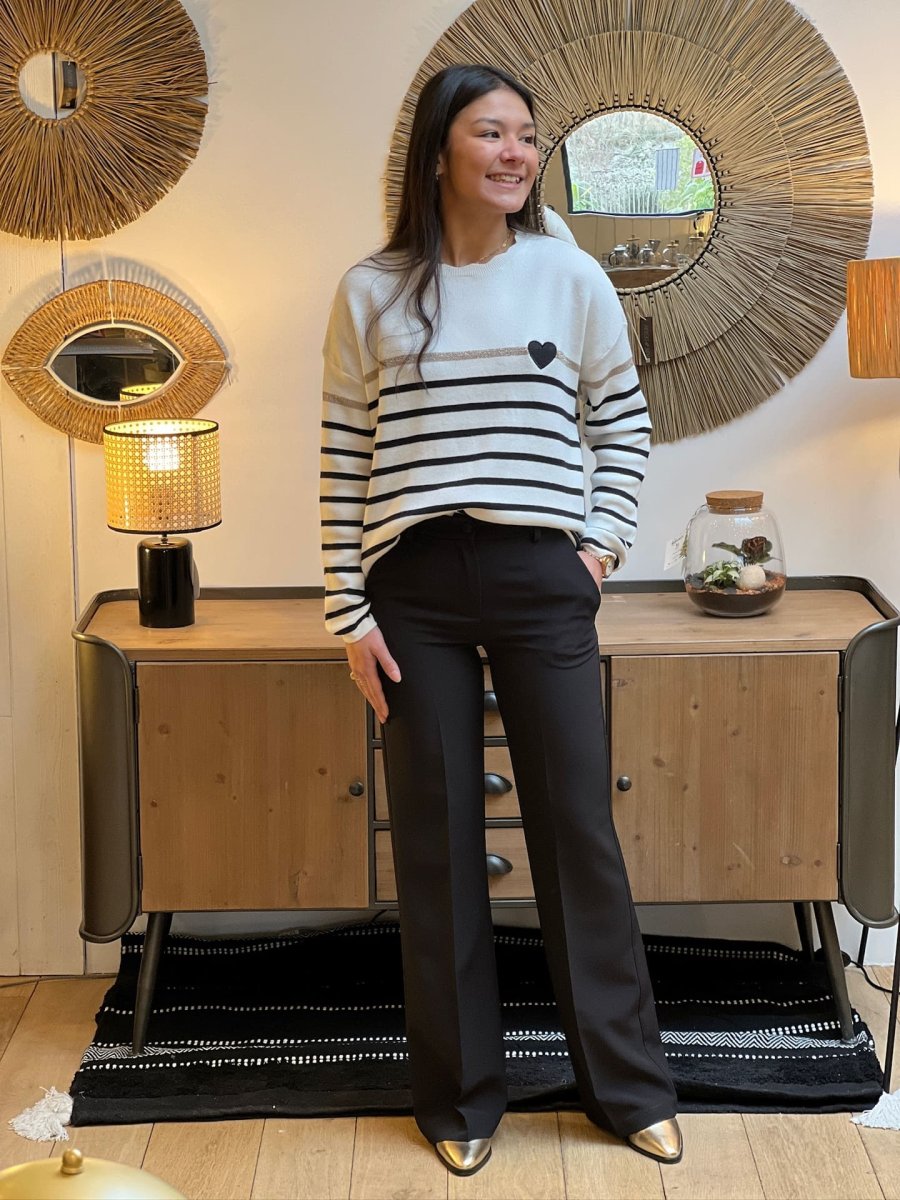 - Pull à ml col rond torsadé marinière + cœur sur poitrine