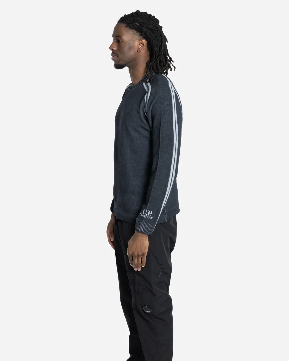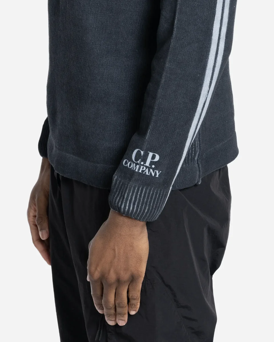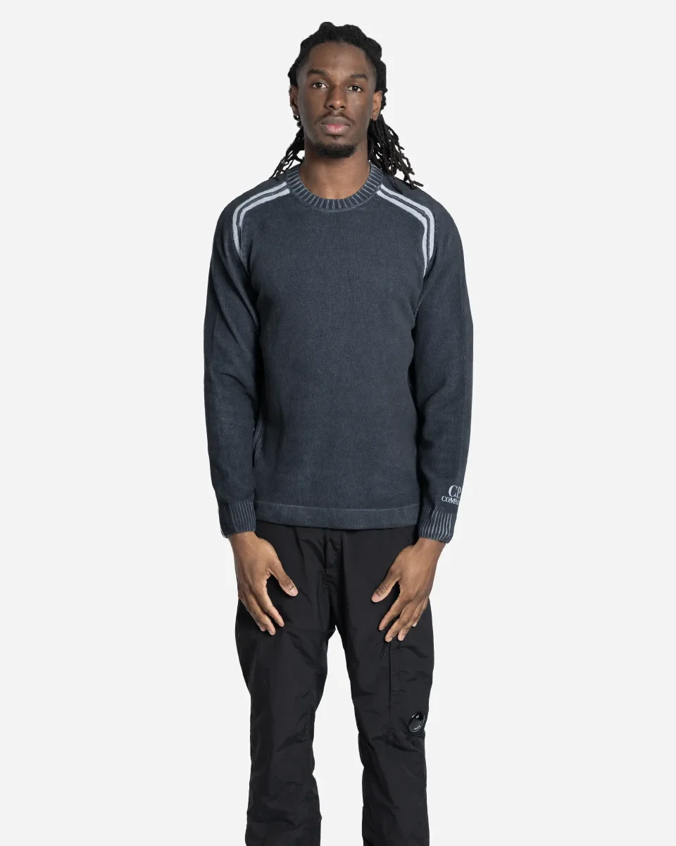 Le pull en coton chenille de chez C.P. Company mise sur une texture singulière et un procédé de teinture innovant. Ce modèle à jauge 7 utilise une technique artisanale de teinture à froid : des bandes de tissu protègent certaines zones le long des manches raglan et de la couture arrière durant le processus, révélant des lignes contrastées uniques une fois retirées. Le design est enrichi par des coutures apparentes et un logo discret imprimé au poignet gauche. Avec son col, son ourlet et ses poignets côtelés, ce pull allie un confort thermique optimal à une recherche esthétique complexe, propre à l’expertise textile de la maison italienne.
