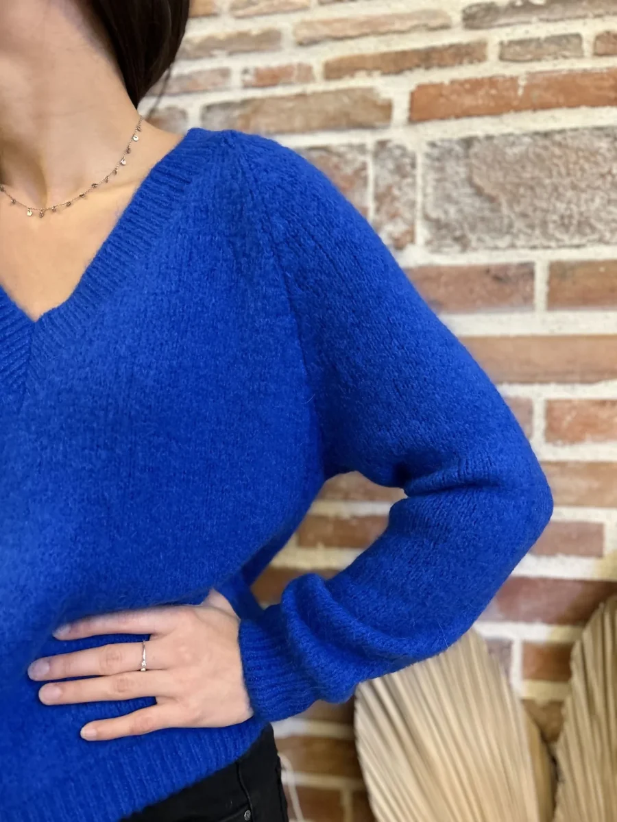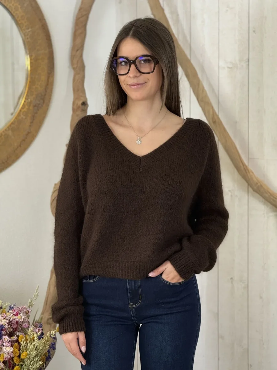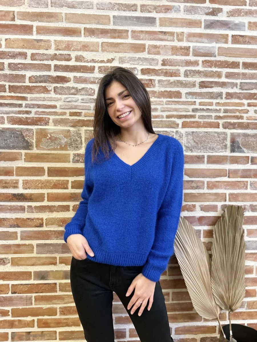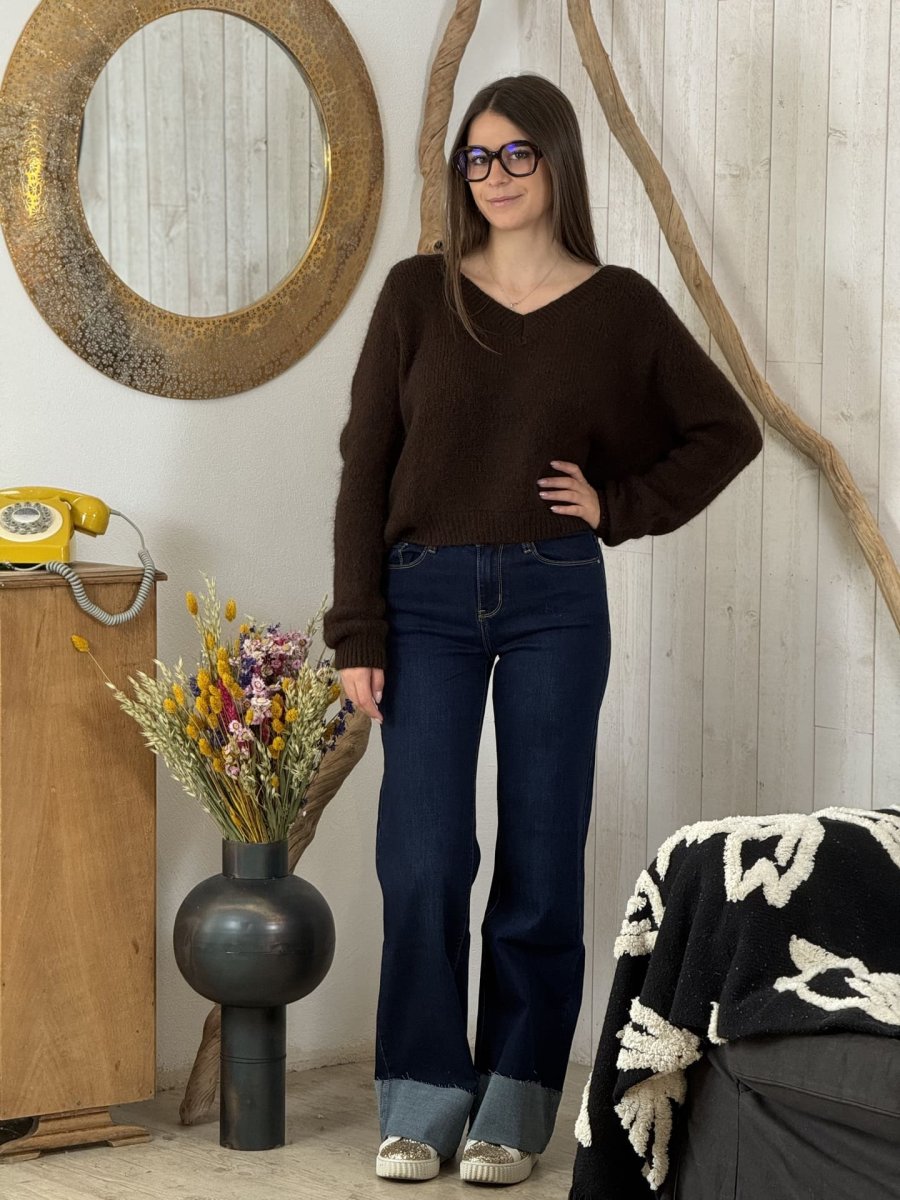 - PULL À ML COL V MOHAIR TOUT DOUX