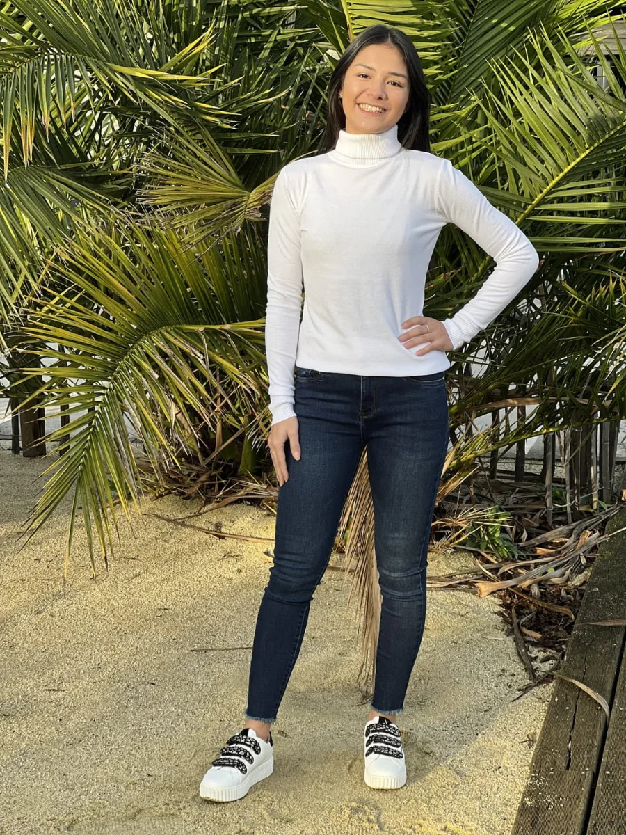 • Pull à ml col roulé uni