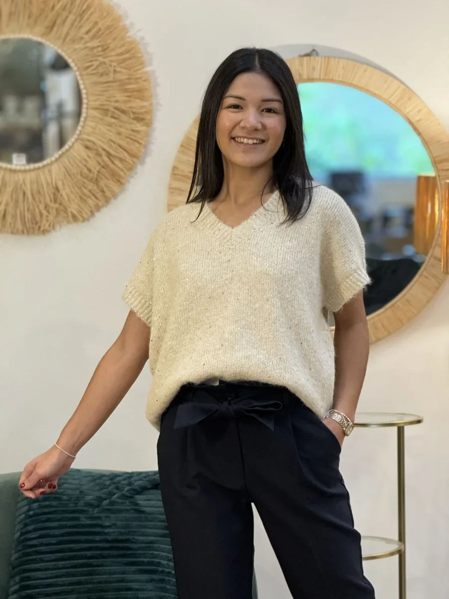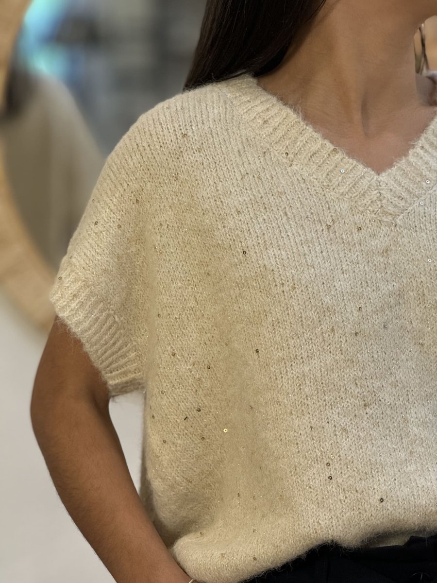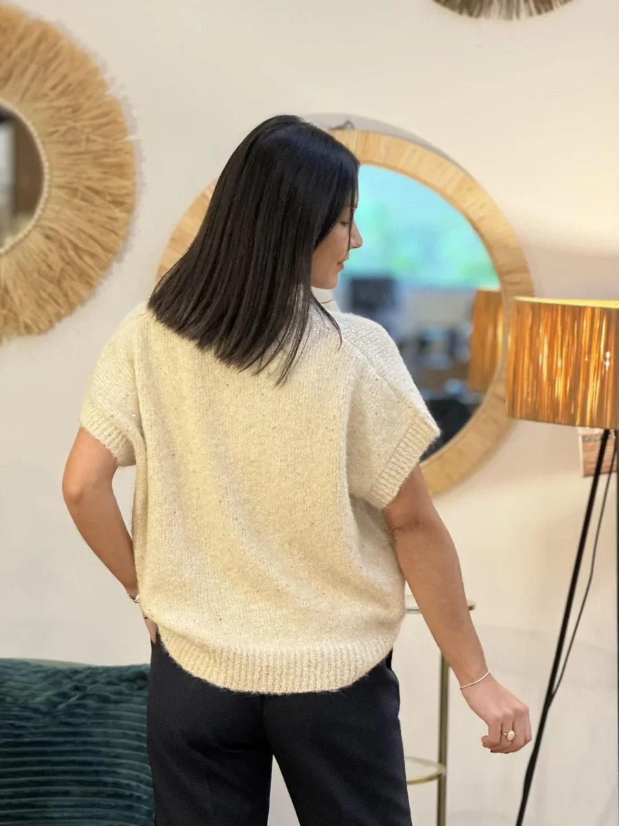- Pull à mc col sans manche avec paillette