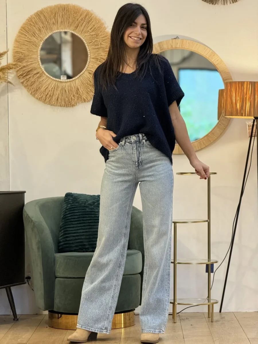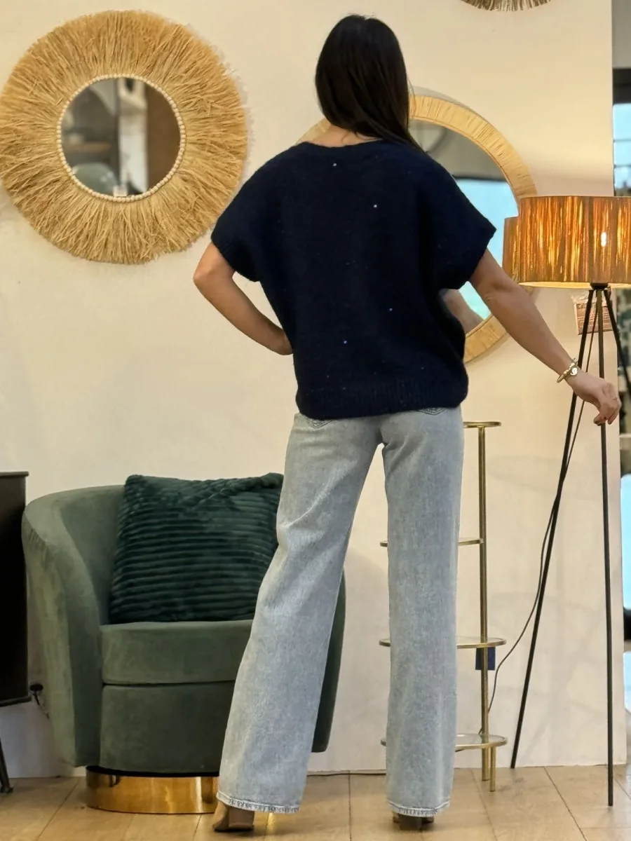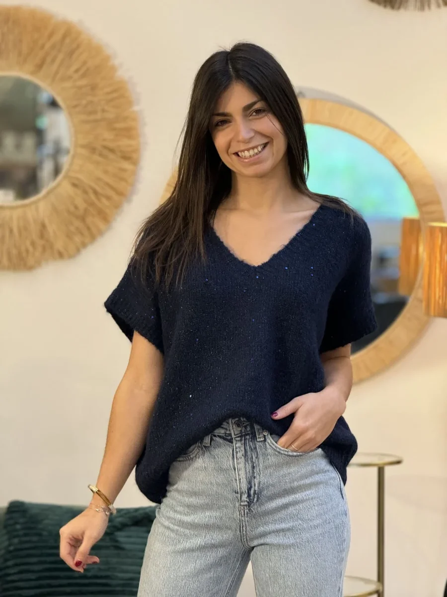 - Pull à mc col sans manche avec paillette
