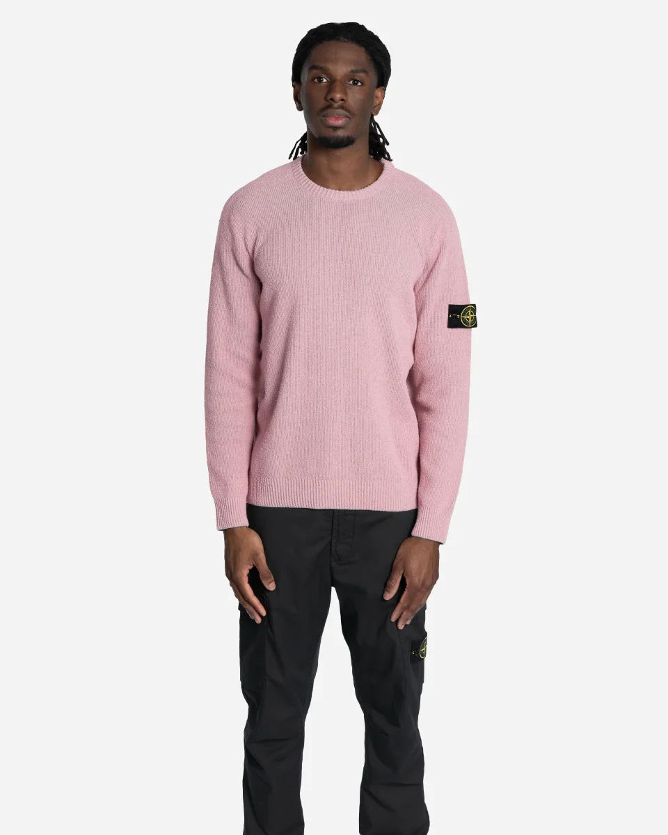Ce pull à col ras-du-cou est réalisé en maille de coton bouclé travaillée en côtes plates avec une jauge 14. Sa confection se distingue par des manches raglan offrant une grande liberté de mouvement et un empiècement structurant au dos. Le modèle présente une coupe ample pour un porter décontracté, complétée par des finitions en côtes plus larges aux poignets ainsi qu’au bord inférieur. L’emblématique badge Stone Island est fièrement apposé sur la manche gauche.
