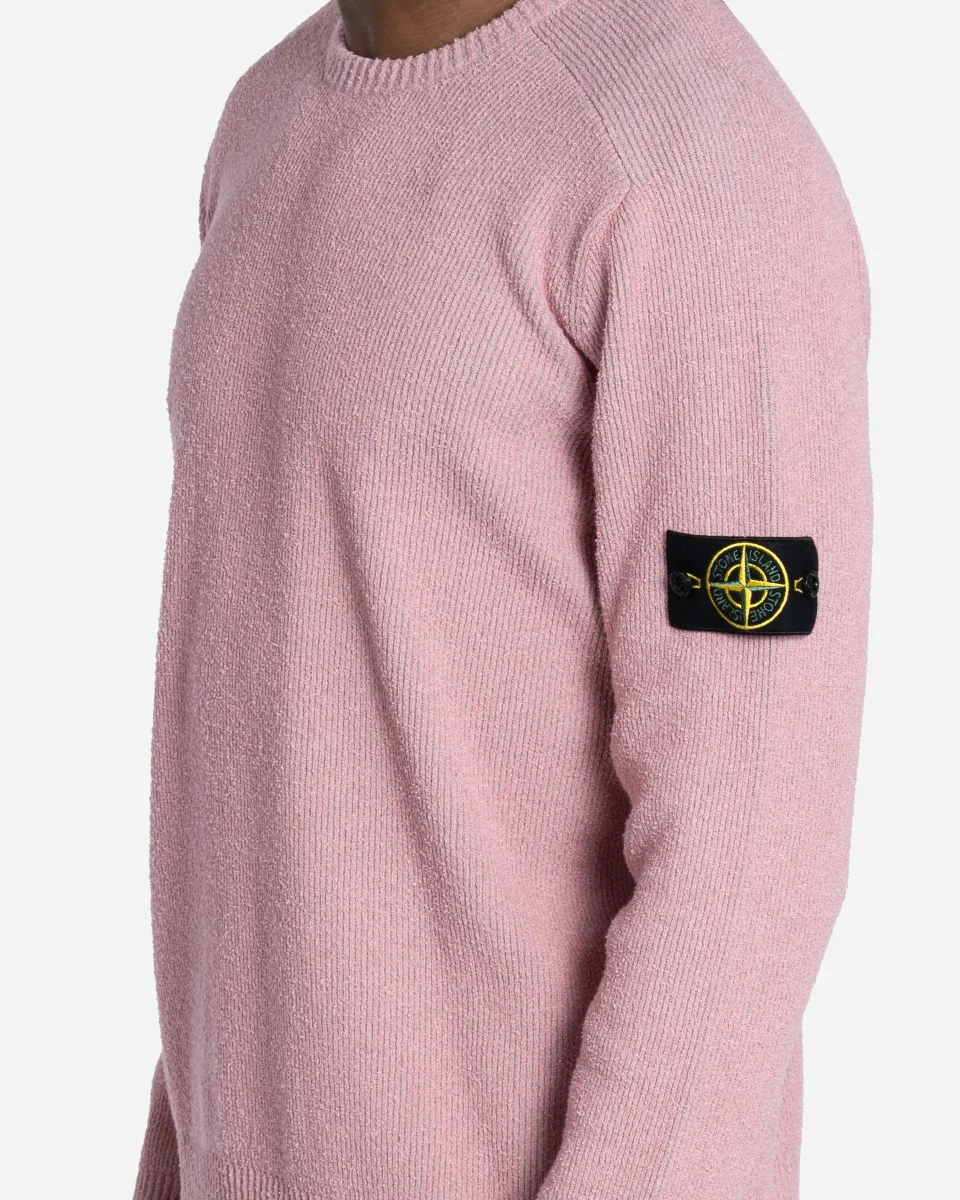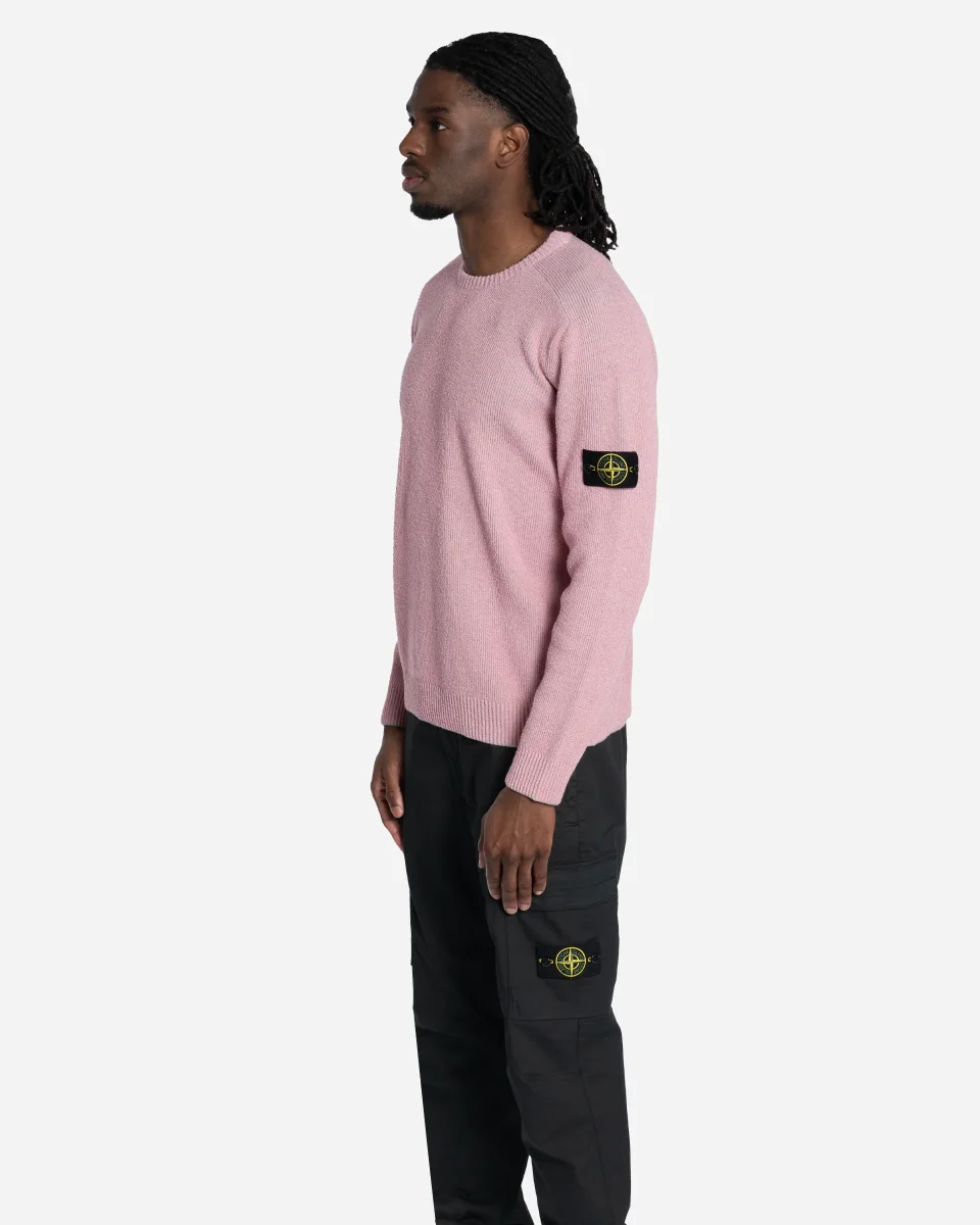 Pull, Stone Island, Coton bouclé, Rose, Manches raglan, Coupe ample, Badge boussole, Jauge 14, Maille technique, Sportswear