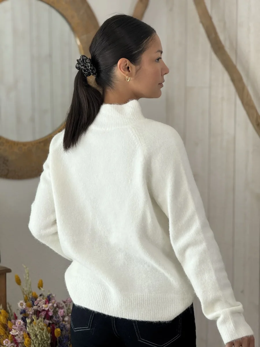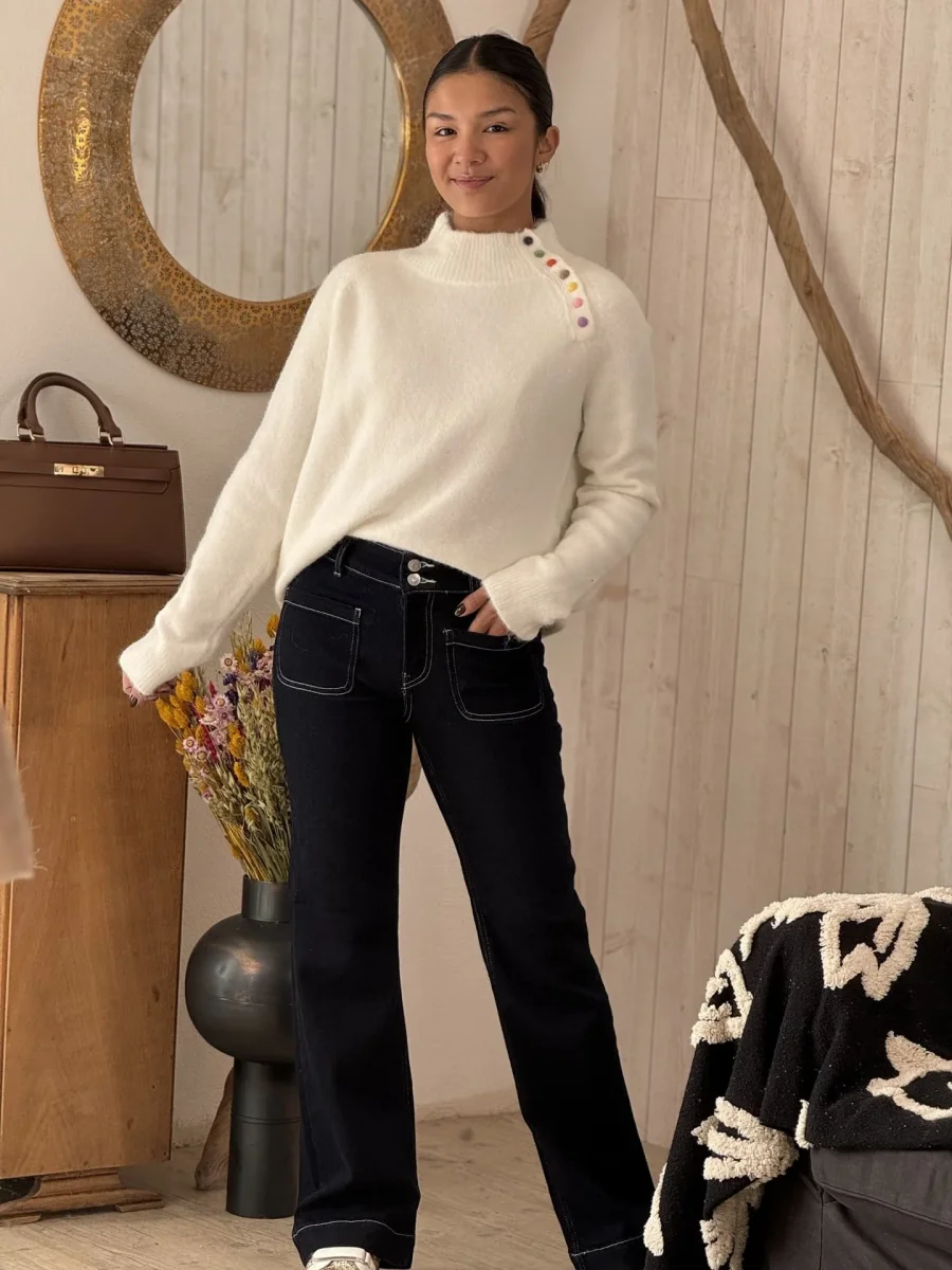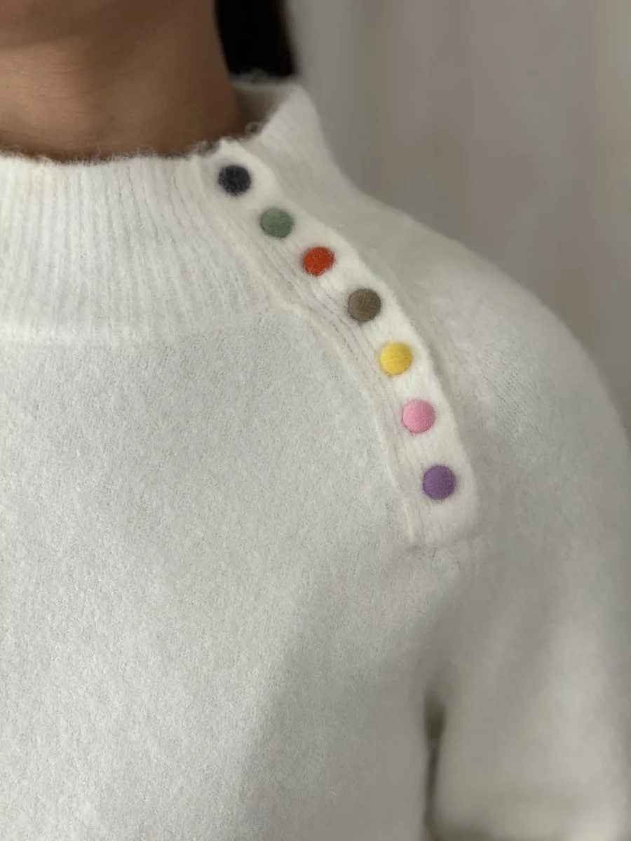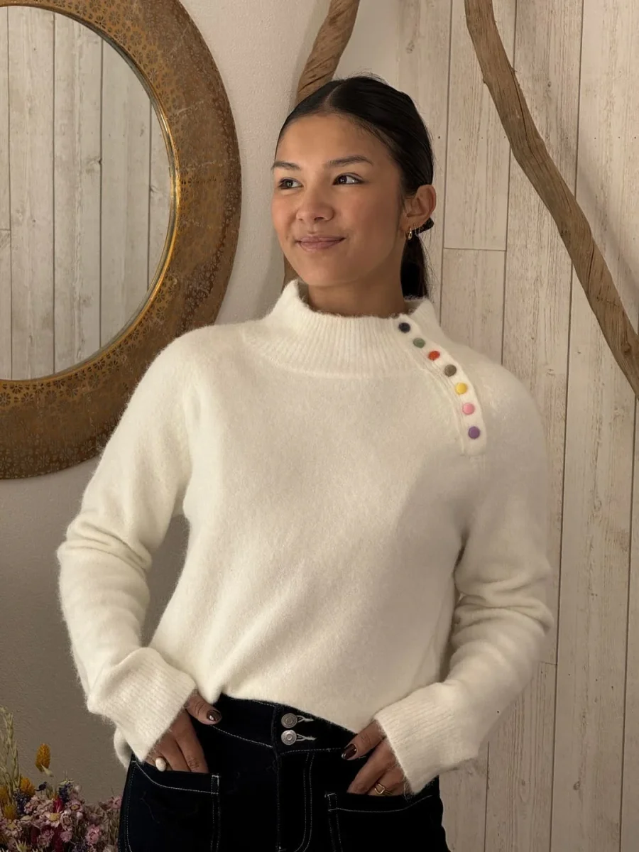 • Pull à ml col haut montant avec boutons coloré sur épaule