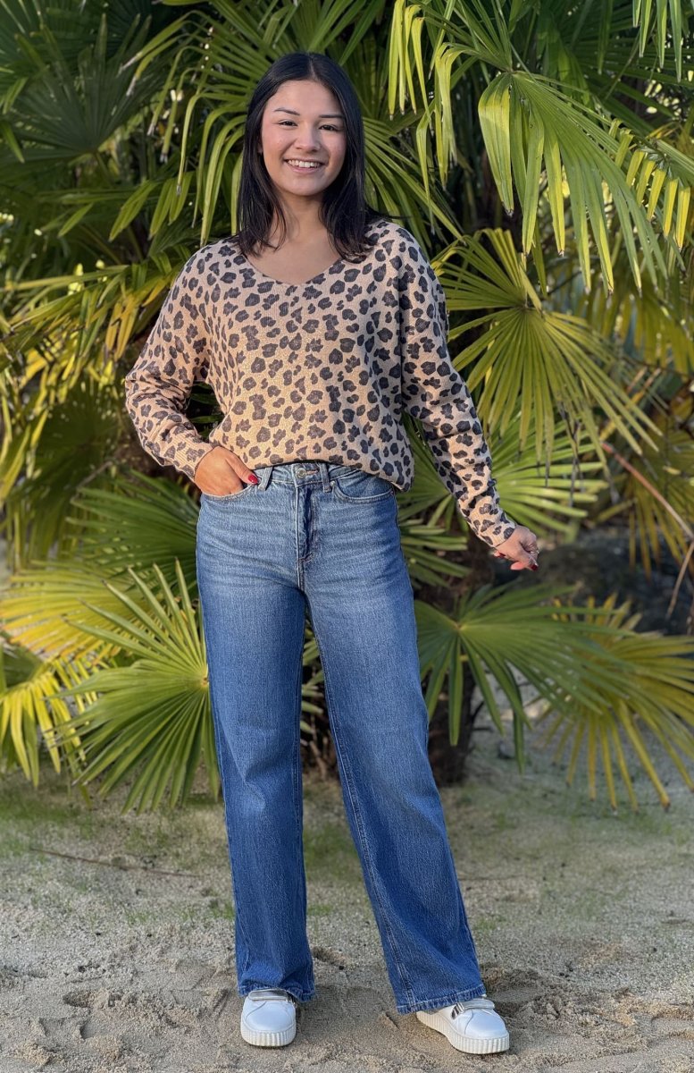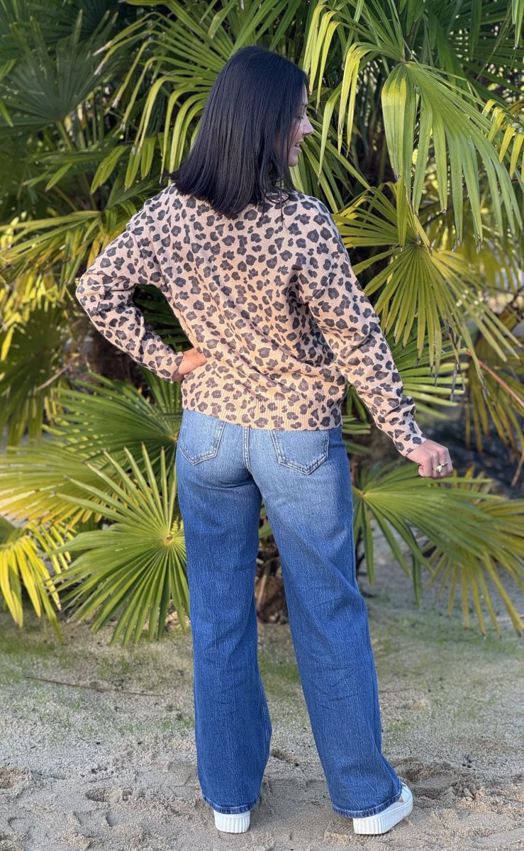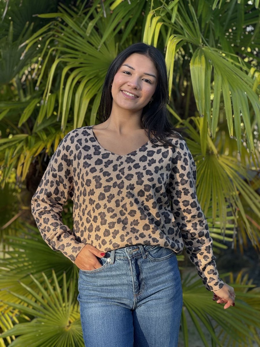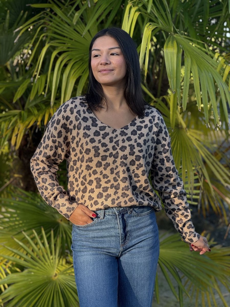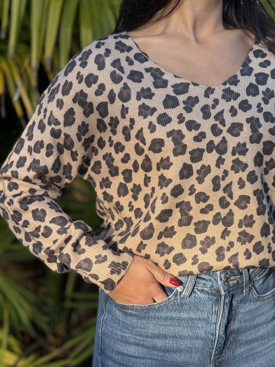 - Pull à ml col v imprimé léopard