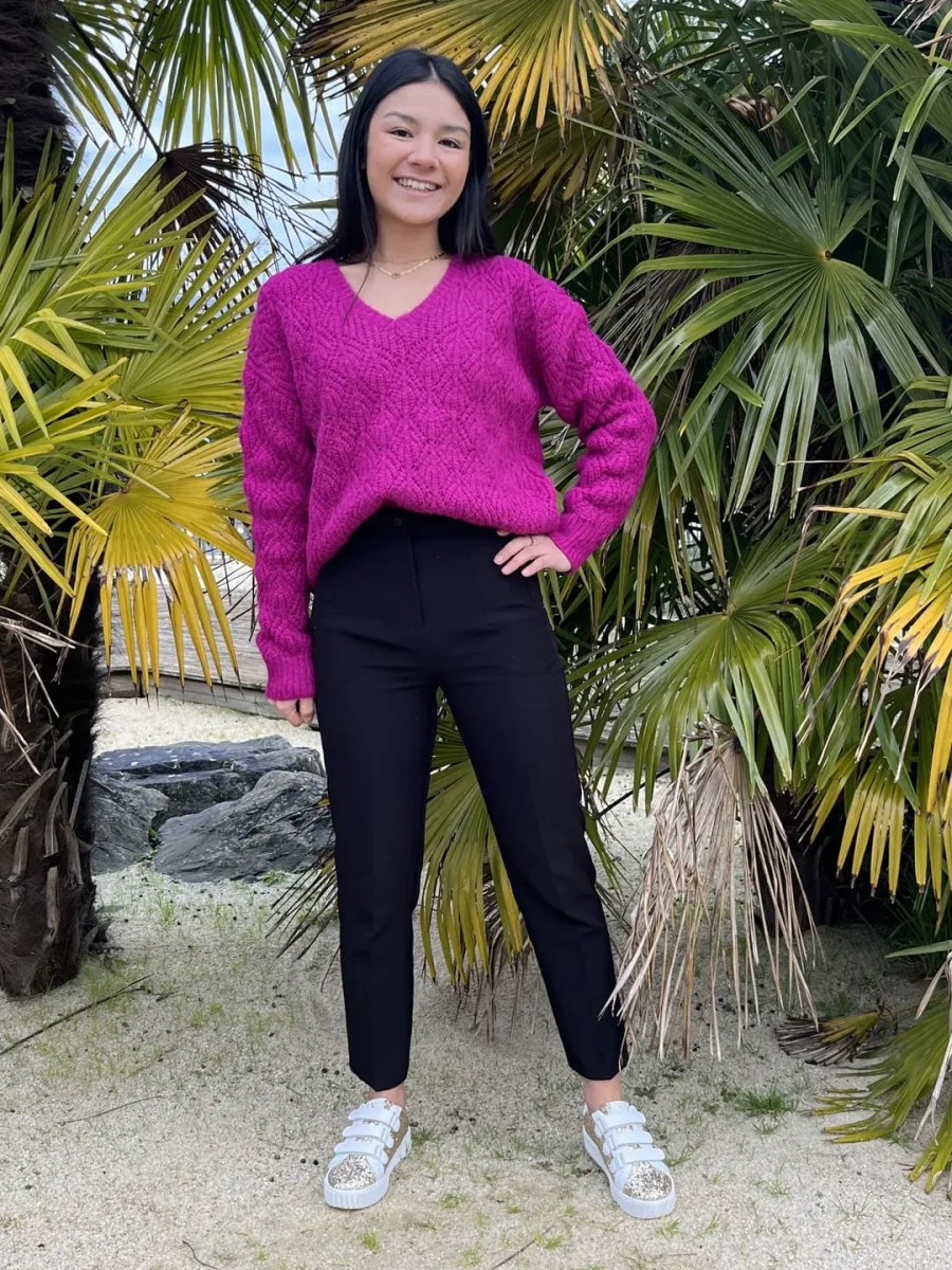 Mathilde mesure 1m65. Elle porte la taille S/M pour ce modèle.