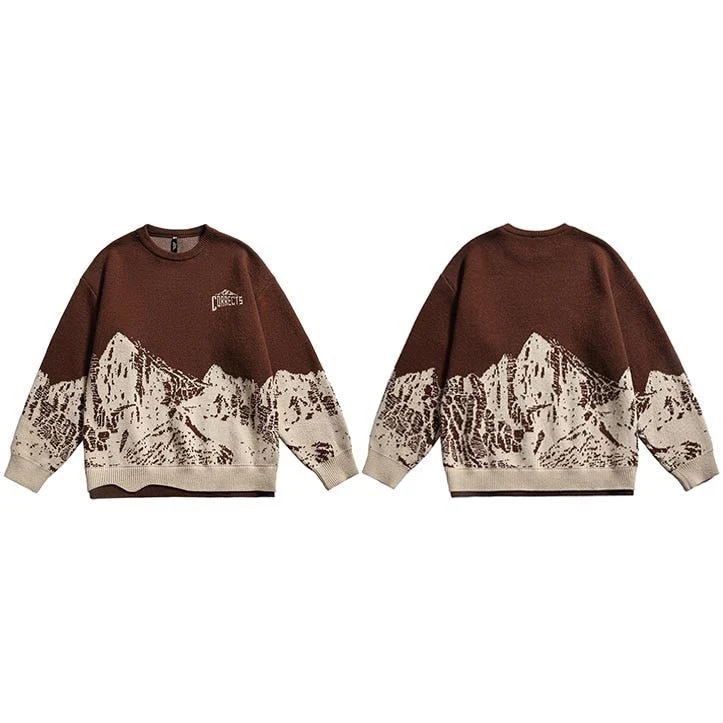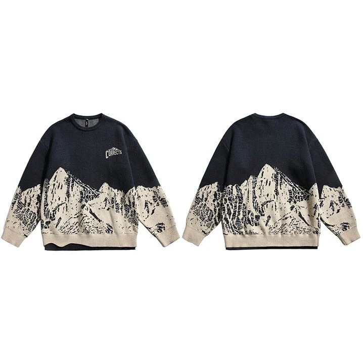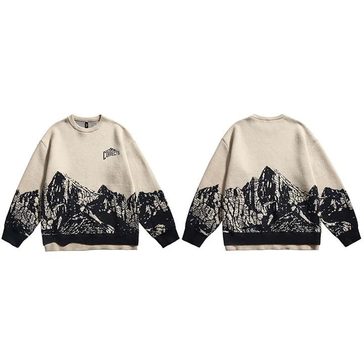 Le pull style japonais pour les vrais passionnés de mode ! Mélange de streetwear et de style vintage, il présente un design sombre unique avec un design montagneux.