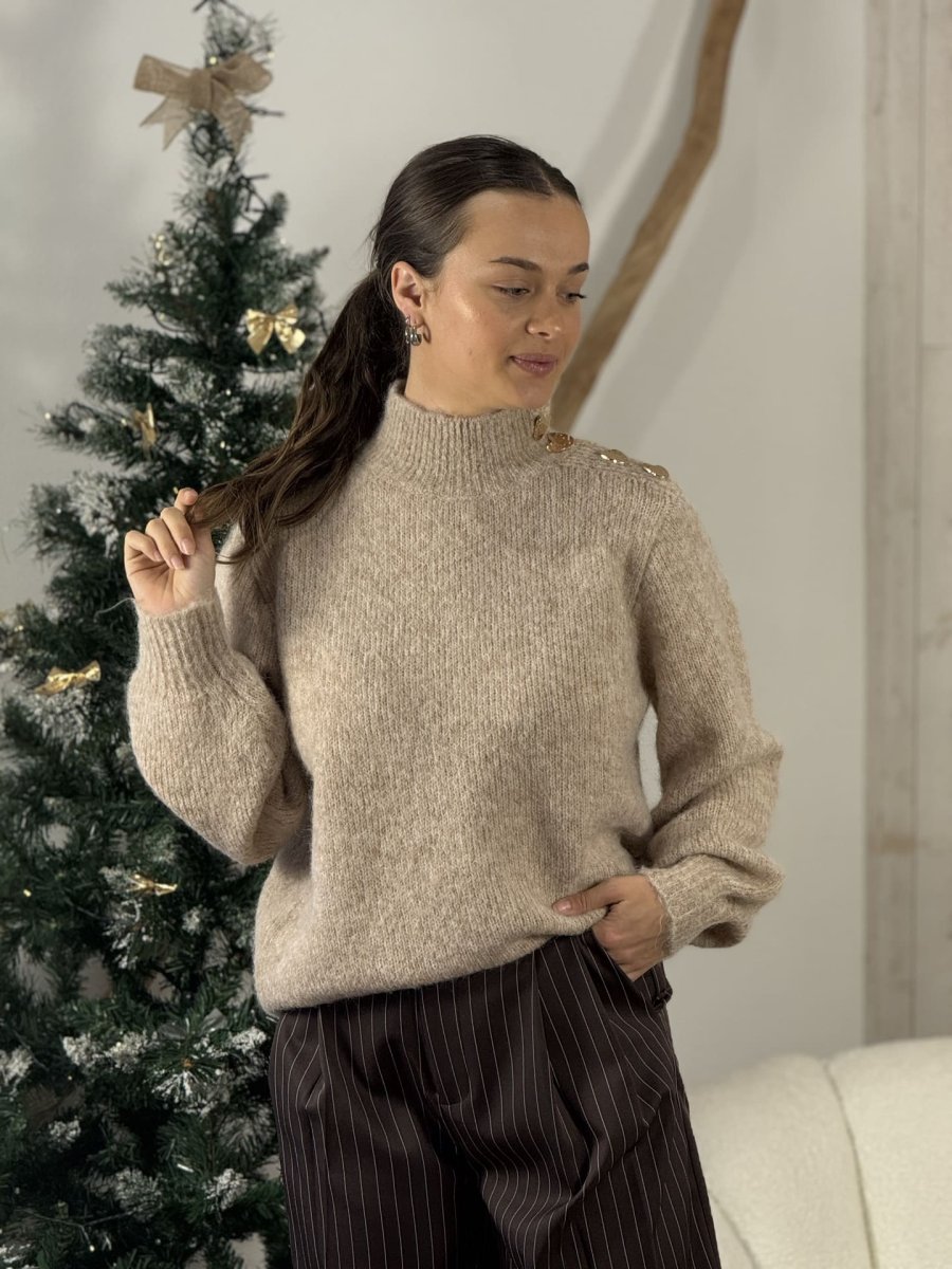 - PULL À ML COL HAUT AVEC LAINE BOUTONS CŒUR SUR EPAULE