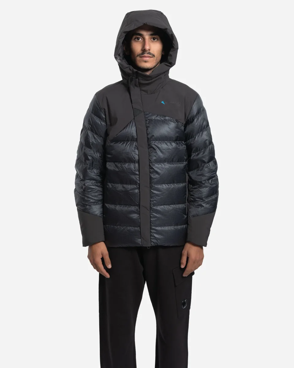 Doudoune, Klättermusen, Rå Hood, Re-down recyclé, PrimaLoft Silver, randonnée hivernale, tissu Loft, capuche ajustable, fermeture bidirectionnelle