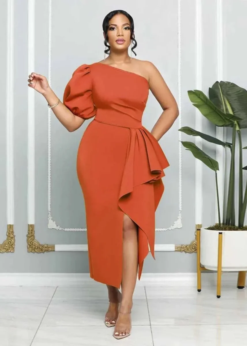 Si tu recherches une robe qui allie élégance et audace pour un mariage ou une soirée inoubliable, cette robe cocktail mariage terracotta est faite pour toi. Sa coupe asymétrique met en valeur l’épaule avec une manche bouffante qui ajoute une touche sophistiquée. Le drapé sur le côté, subtilement placé, crée une silhouette des plus avantageuses tout en apportant une note raffinée et moderne. La fente discrète souligne la jambe avec grâce, faisant de cette tenue un véritable atout pour captiver les regards.
