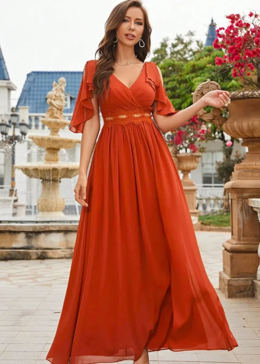 Robe demoiselle d’honneur bohème terracotta :Un charme bohème irrésistible pour une allure envoûtante