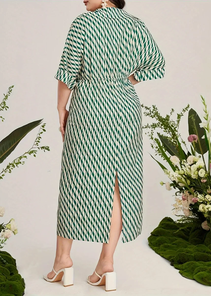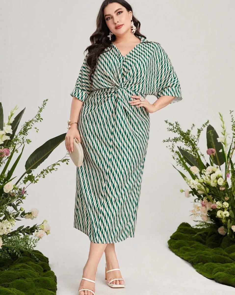 Robe midi grande taille verte à motifs : élégance et confort