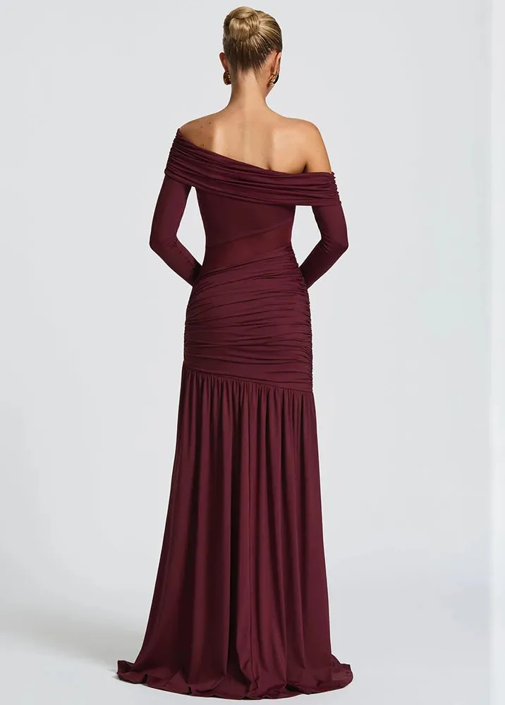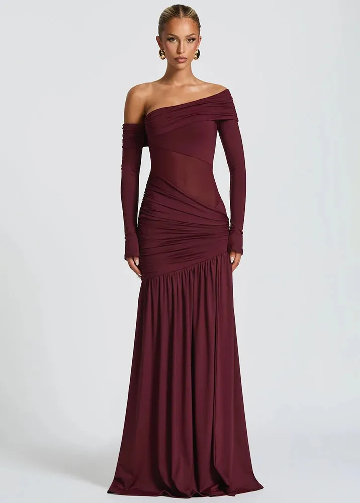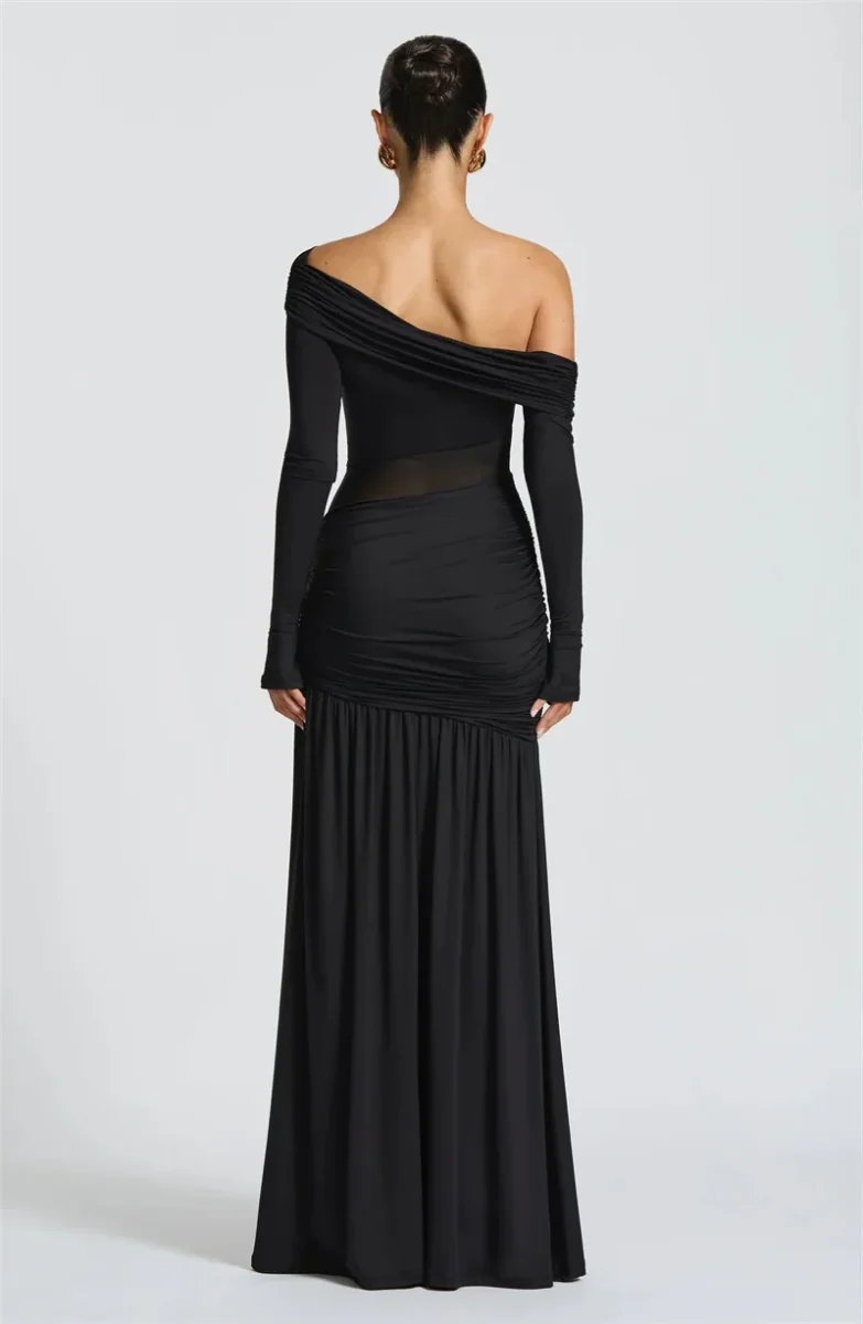 - Épaule dégagée et manches longues pour un style glamour et raffiné