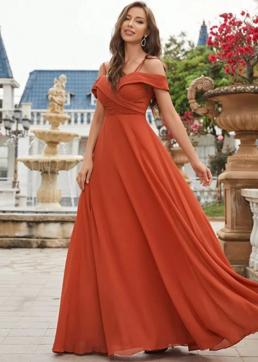 Envoûte avec la demoiselle robe terracotta mariage , à la fois gracieuse et pleine de charme.