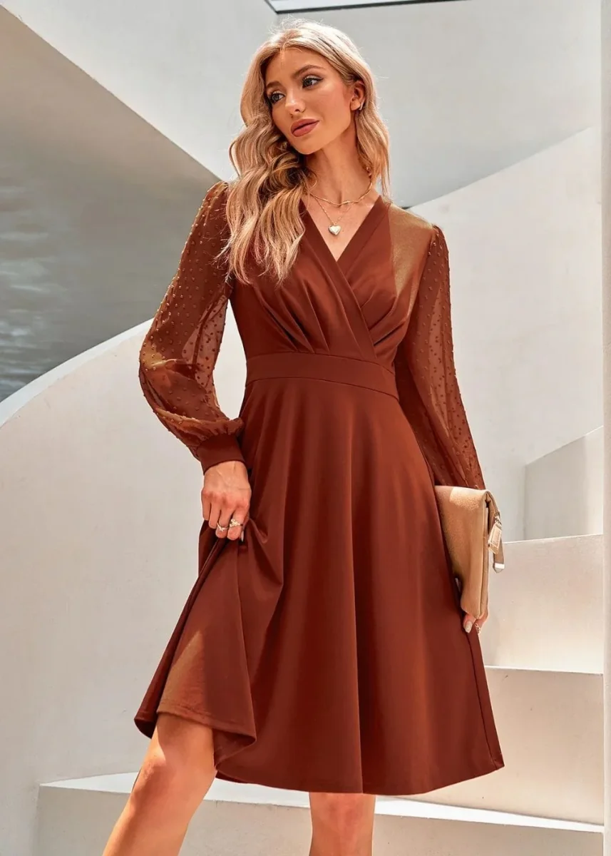 Craque pour cette sublime robe trapèze terracotta, un véritable symbole de féminité et d’élégance. Son tissu fluide épouse le mouvement avec grâce, tandis que sa taille marquée et son décolleté cache-cœur soulignent parfaitement ta silhouette. Les manches en tulle à pois ajoutent une touche de délicatesse et de romantisme, rendant cette pièce irrésistiblement raffinée. Que ce soit pour un événement chic ou une sortie spéciale, cette robe ne laisse personne indifférent et évoque pleinement l’élégance intemporelle.