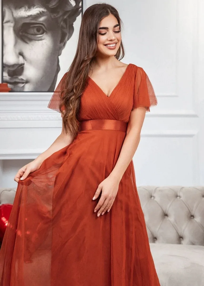 Laisse-toi séduire par cette robe tulle terracotta, un modèle aussi romantique qu’élégant, parfait pour briller avec subtilité