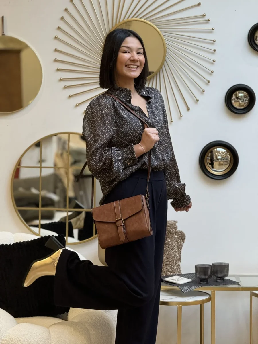PETIT SAC RECTANGLE BANDOULIÈRE AVEC RABAT + CEINTURE Taille : Mathilde mesure 1m68. Elle porte la taille Taille unique pour ce modèle. Taille : Taille unique Composition & entretien : 100% sac en synthétique Lavage à la main conseillé Besoin d’un conseil ? Consultez notre foire aux questions ou contactez-nous via notre formulaire de contact