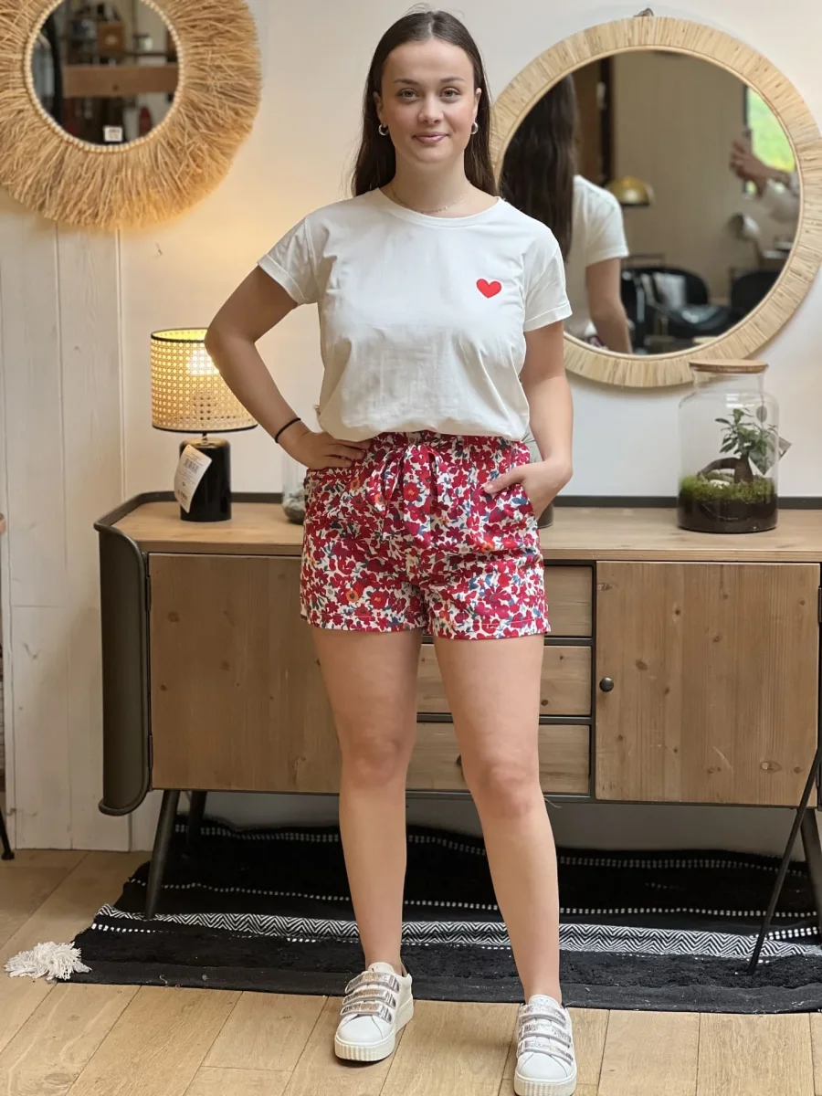 SHORT FLEURI FOND BLANC Taille : Juliette mesure 1m63. Elle porte la taille S/M pour ce modèle. Taille : S/M (36-38) et M/L (38-40) Composition & entretien : 100% POLYESTER Lavage à la main conseillé Besoin d’un conseil ? Consultez notre foire aux questions ou contactez-nous via notre formulaire de contact