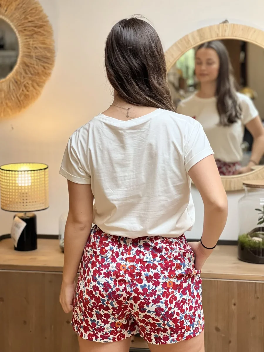 - SHORT FLEURI FOND BLANC