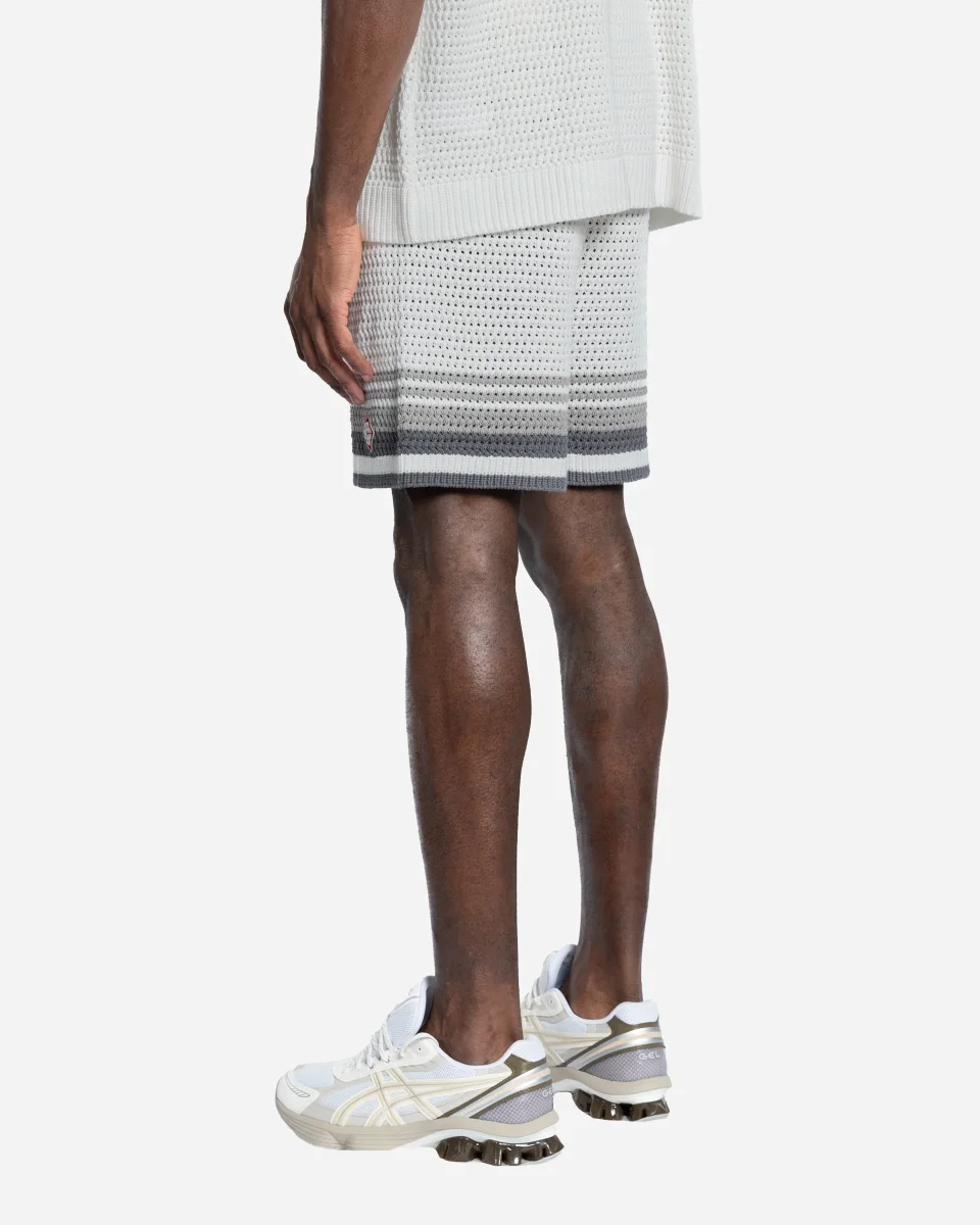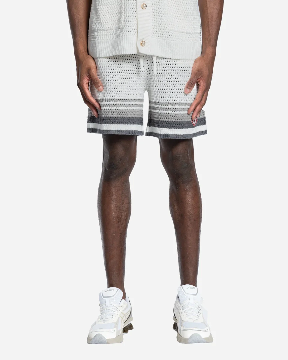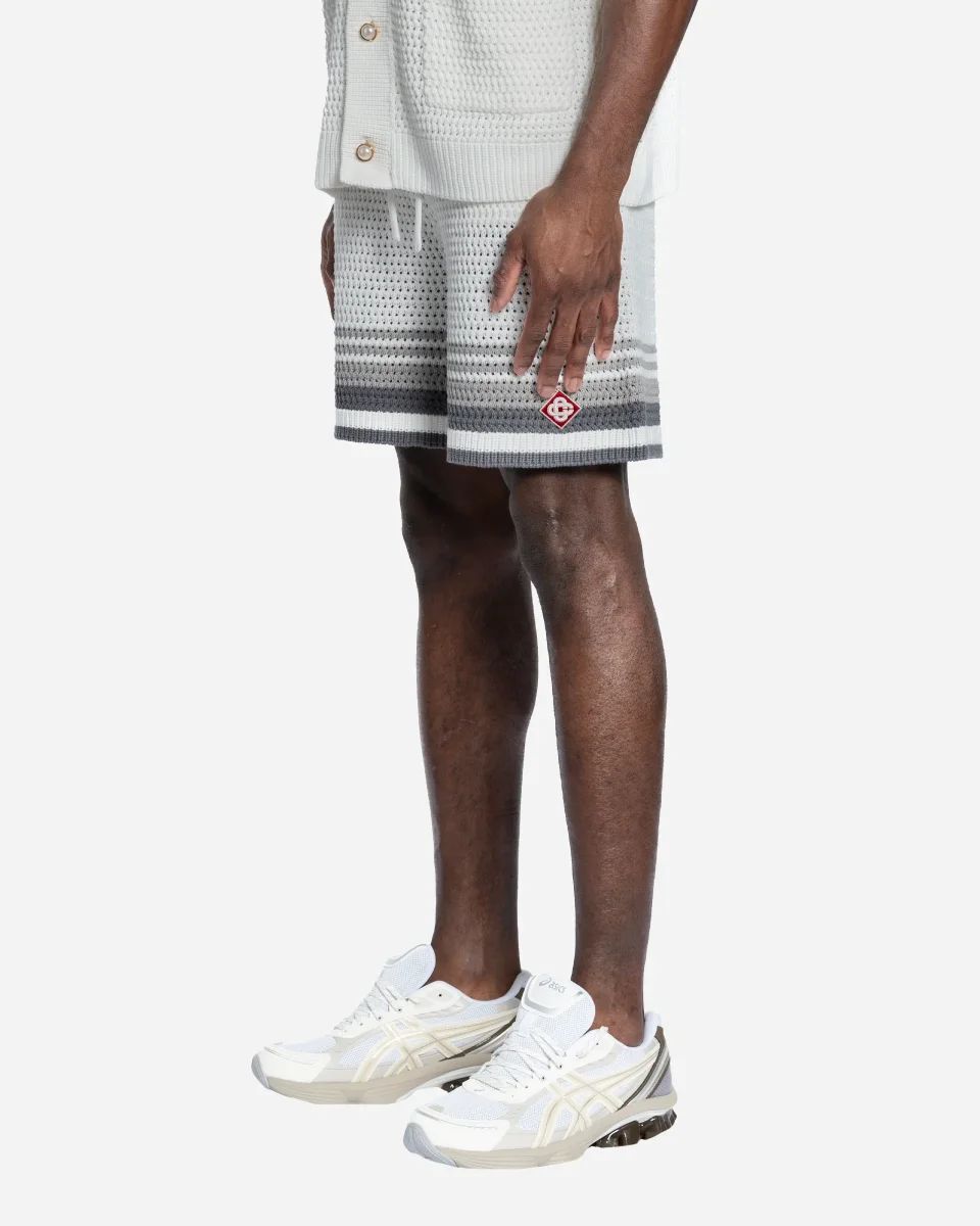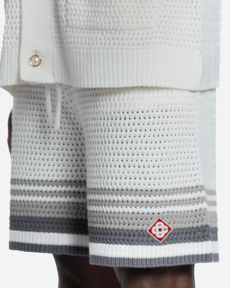 Short de tennis, Casablanca, Crochet, Blanc et gris, Maille de coton, Rayures, Logo losange, Luxe, Exclusivité, Sportswear chic