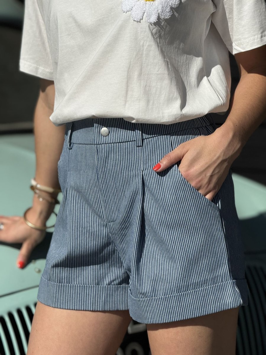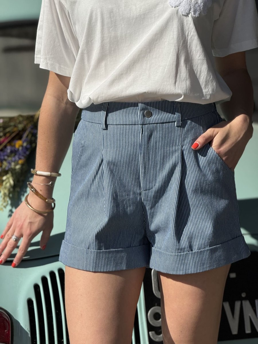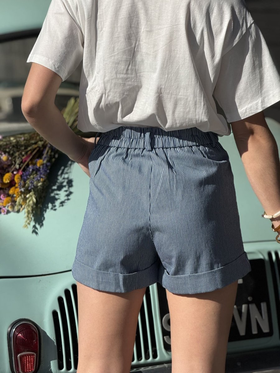 - SHORT COURT à boutons imprimé rayures avec 2 poches