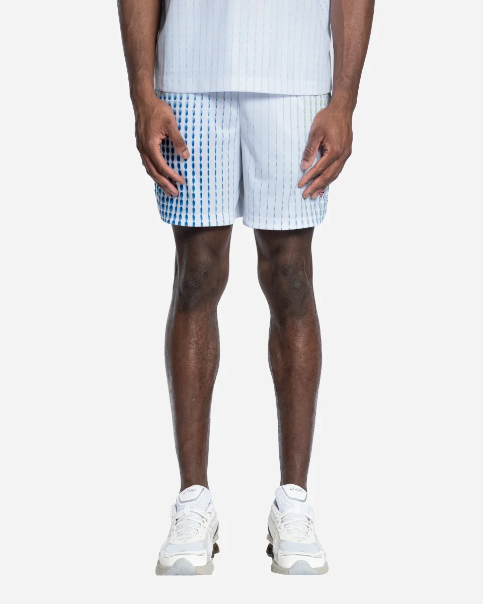 Short, Casablanca, Blanc, Tennis Tech, Mesh birdseye, Imprimé dégradé, Logo diamant, Relaxed fit, Sportswear de luxe, Technique