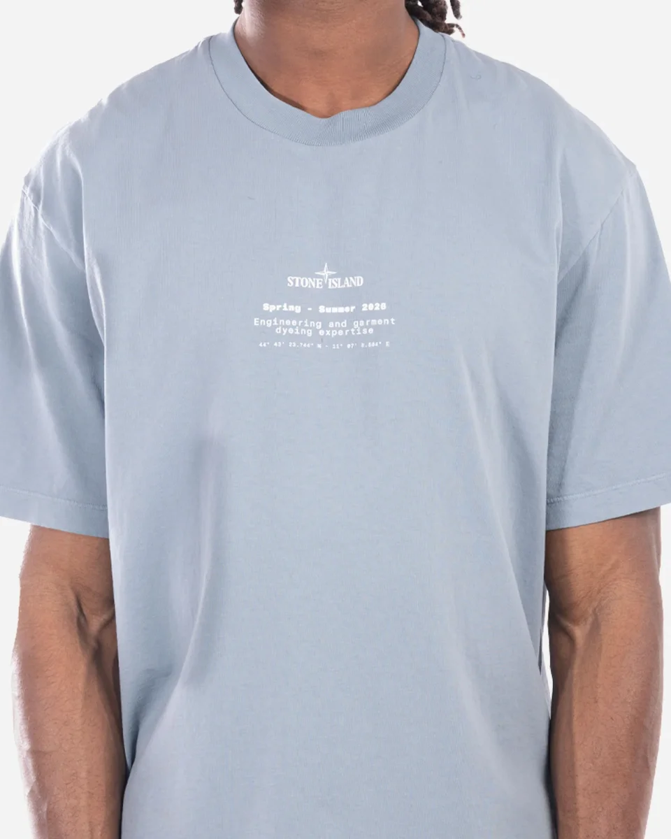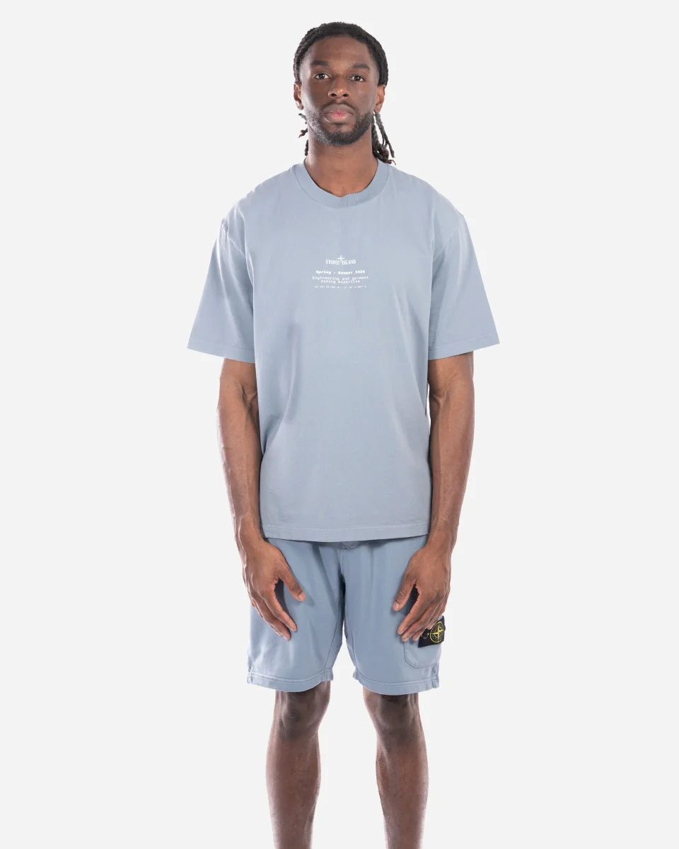 T-shirt de la marque Stone Island en jersey de coton biologique. Manches courtes et encolure côtelée. Imprimé du logo et de l’inscription Stone Island sur la poitrine. Au dos, grand imprimé du logo Compass avec effet vieilli et inscription. Modèle teint en pièce. Coupe regular. Fabriqué en Tunisie.
