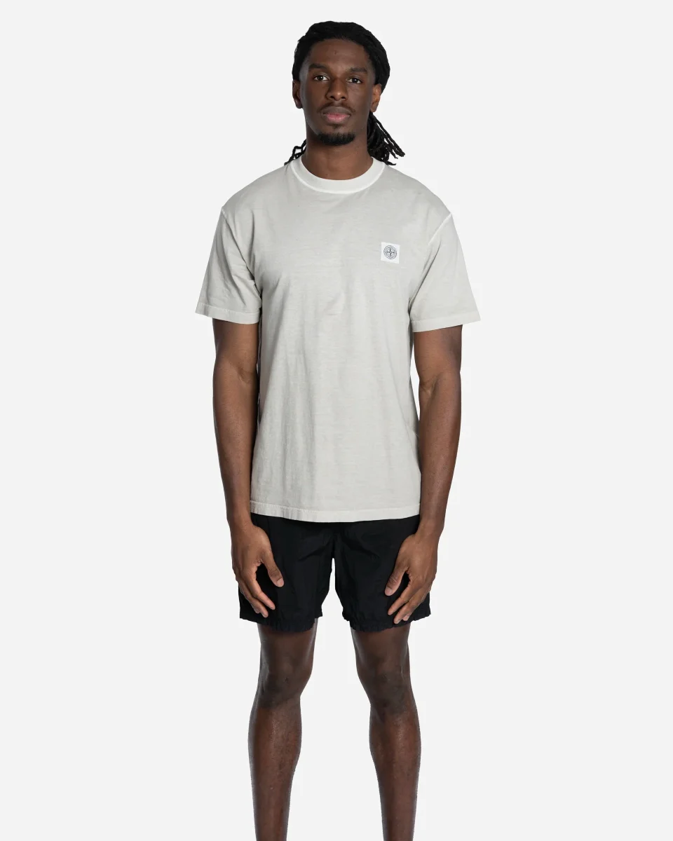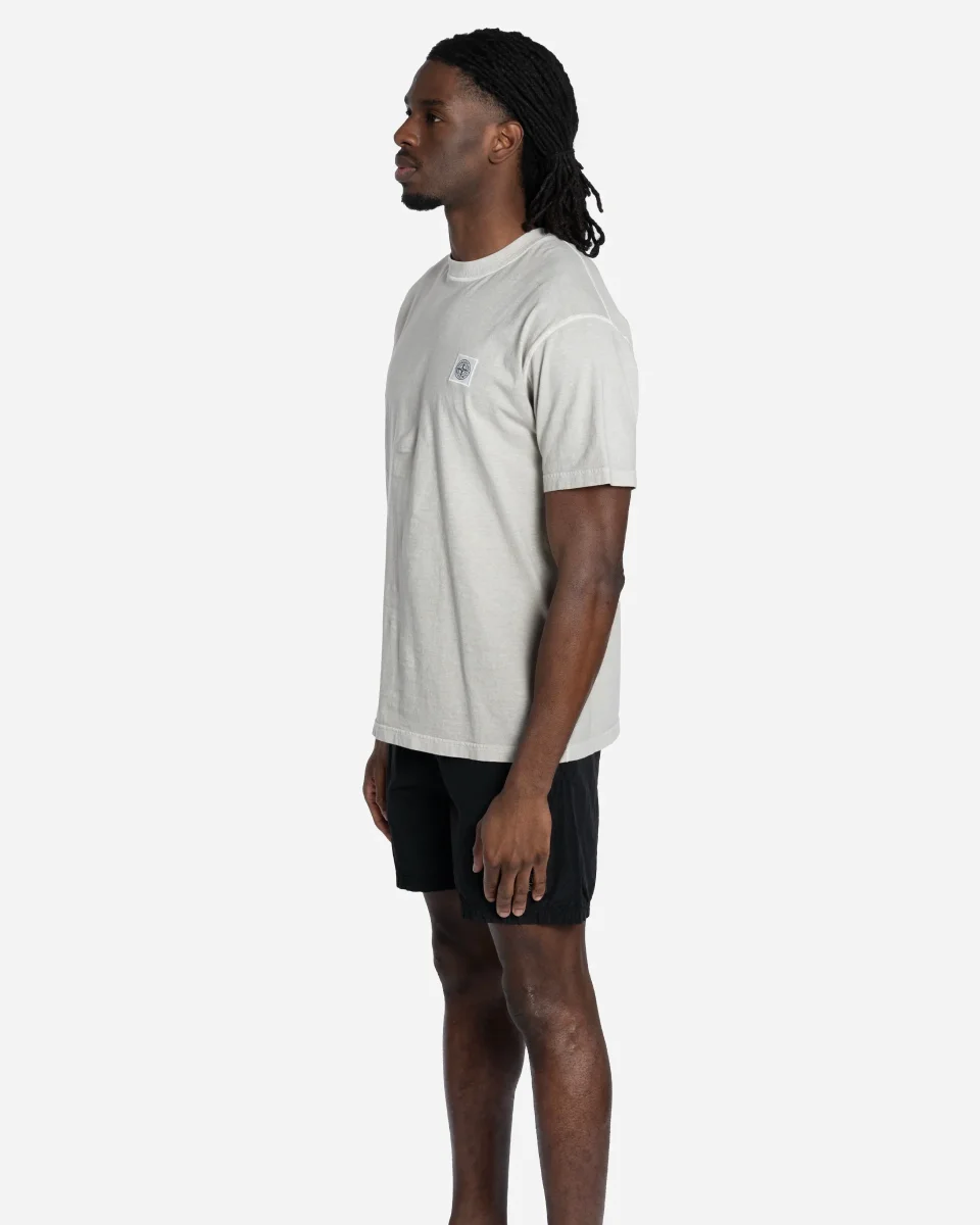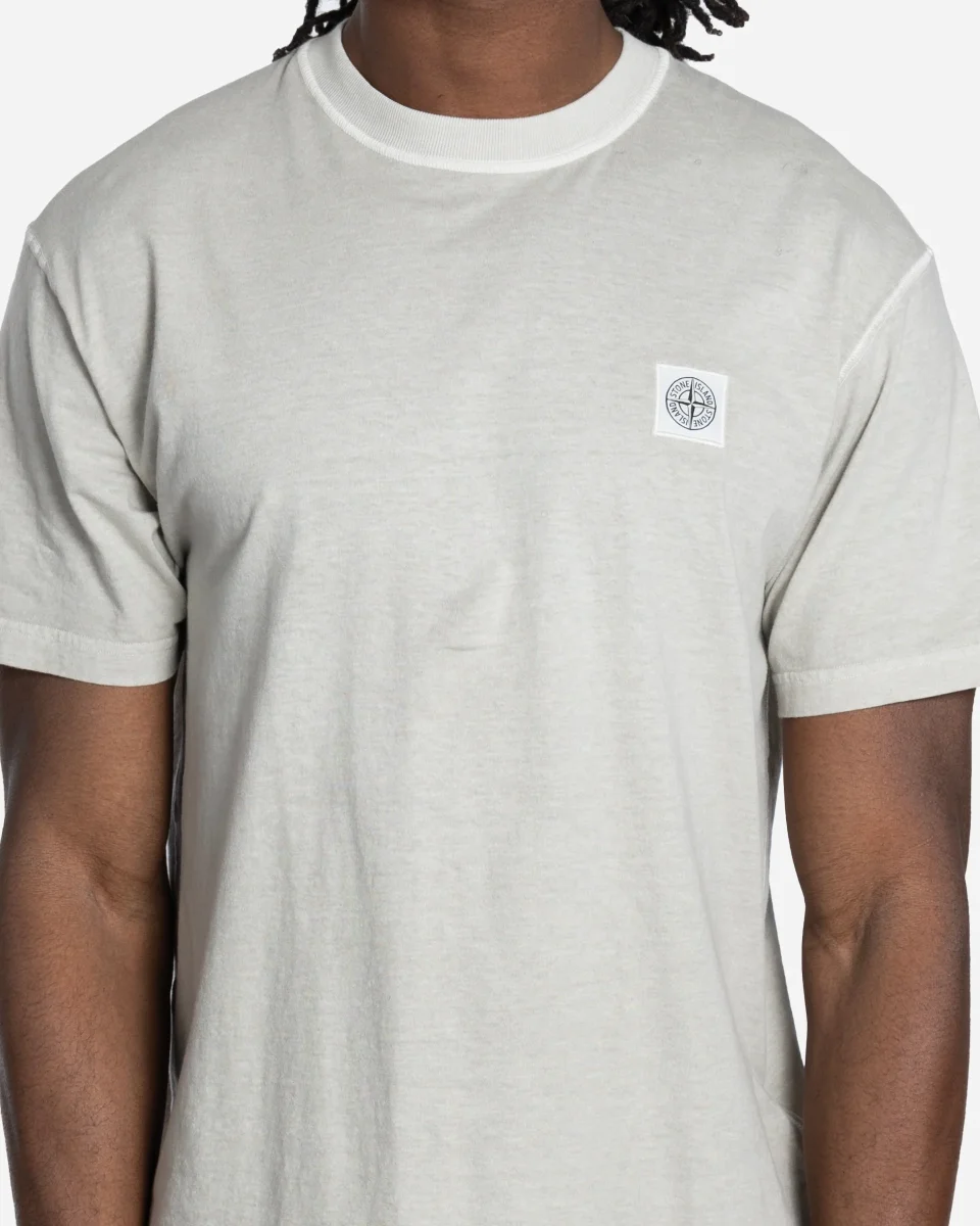 T-shirt, Stone Island, Coton biologique, Gris, Effet FISSATO, Teint en pièce, Patch boussole, Coupe droite, Essentiel