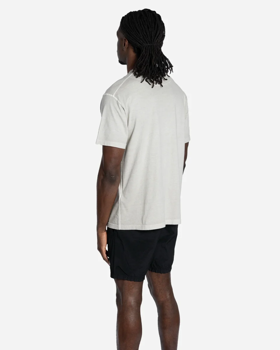 Ce t-shirt à manches courtes est confectionné en jersey de coton biologique, offrant une texture souple et naturelle. Il bénéficie du traitement exclusif « FISSATO », un procédé innovant utilisant une résine soluble dans l’eau combinée à une teinture en pièce pour créer un aspect tridimensionnel et une profondeur de couleur unique. Le modèle se distingue par un patch Compass appliqué sur la poitrine, une encolure côtelée avec une demi-lune de renfort à l’arrière, ainsi que des coutures surjetées qui soulignent sa construction technique.