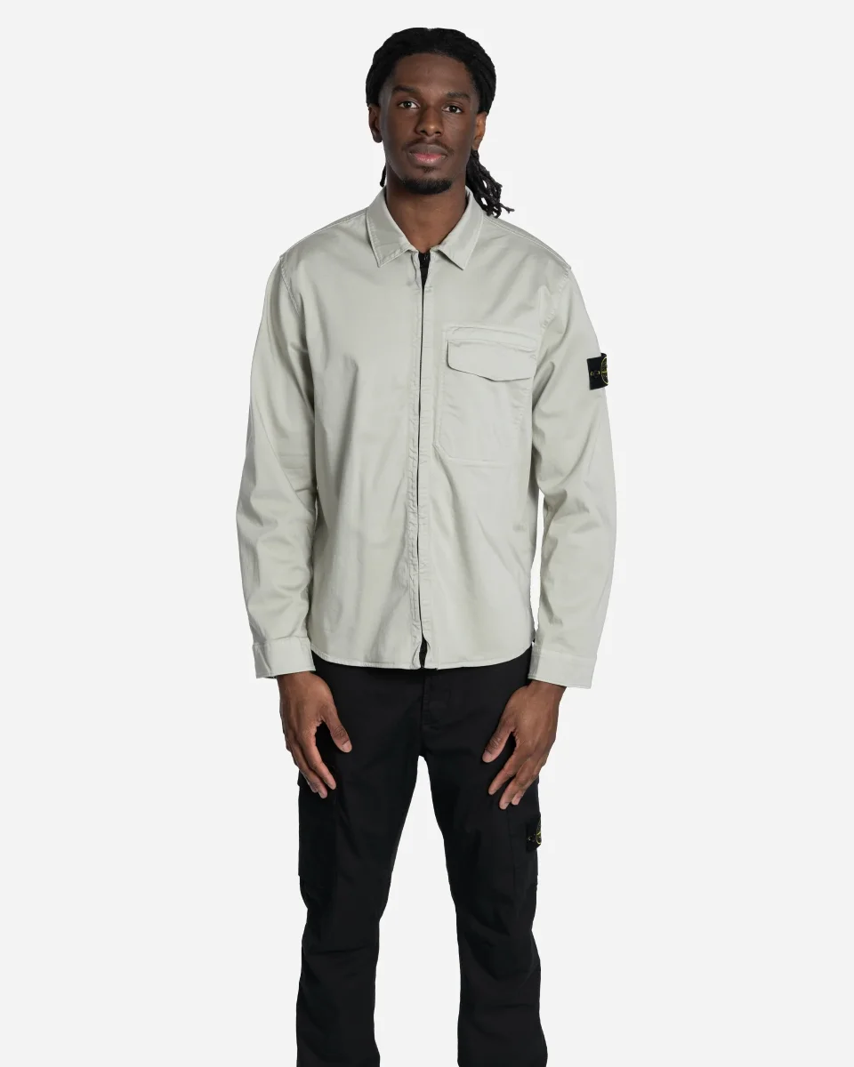 Cette surchemise à la coupe regular est confectionnée en satin de coton biologique extensible, alliant confort et durabilité. Le vêtement bénéficie d’un procédé de teinture en pièce qui lui confère une profondeur de couleur unique. Son design soigné intègre une poche poitrine plaquée à rabat boutonné, un empiècement au dos avec renfort intérieur et un ourlet arrière arrondi légèrement plongeant. L’emblématique badge Stone Island est apposé sur la manche gauche. Fonctionnelle, elle est dotée de poignets ajustables à bouton-pression et d’une fermeture zippée bidirectionnelle dissimulée pour une silhouette épurée.