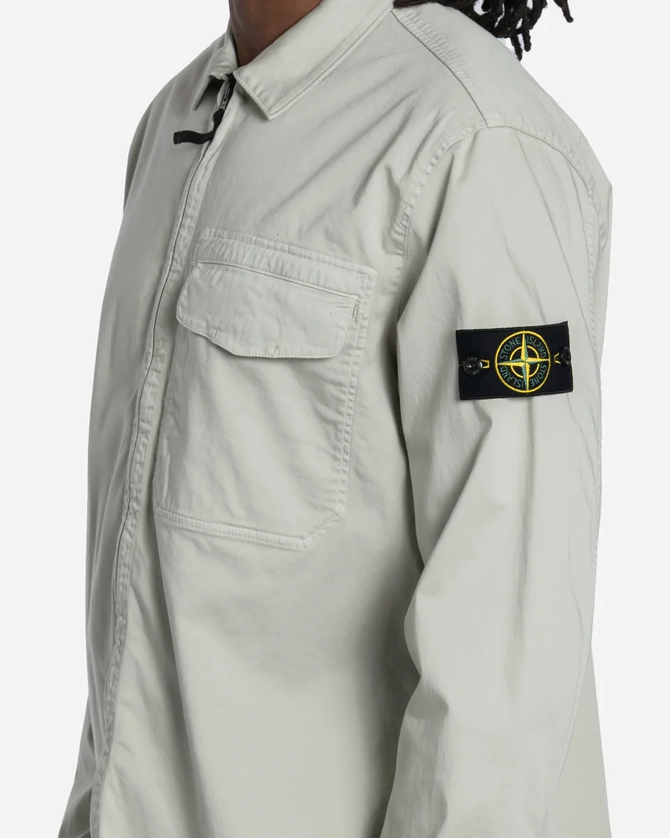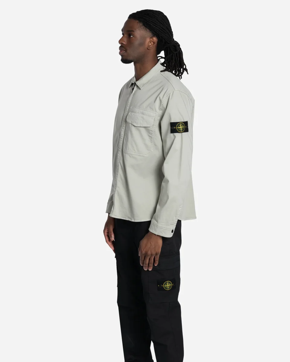 Surchemise, Stone Island, Coton stretch, Perle, Satin de coton, Teint en pièce, Badge boussole, Coupe regular, Technique, Sportswear