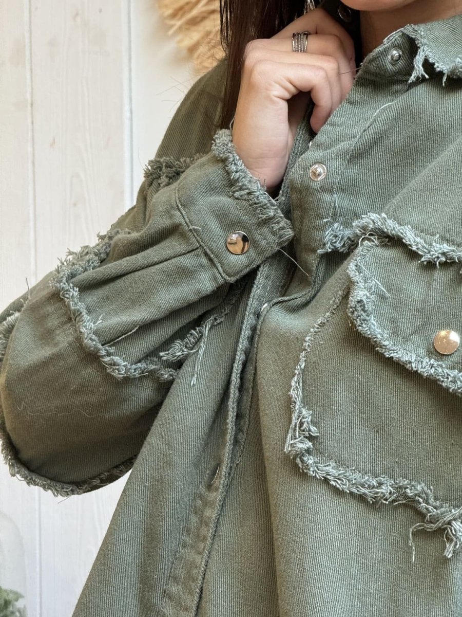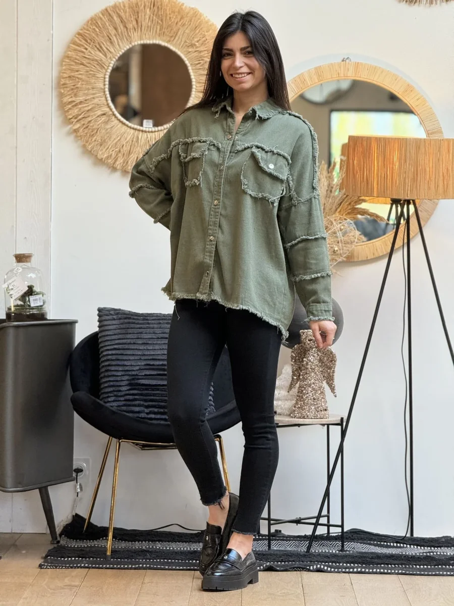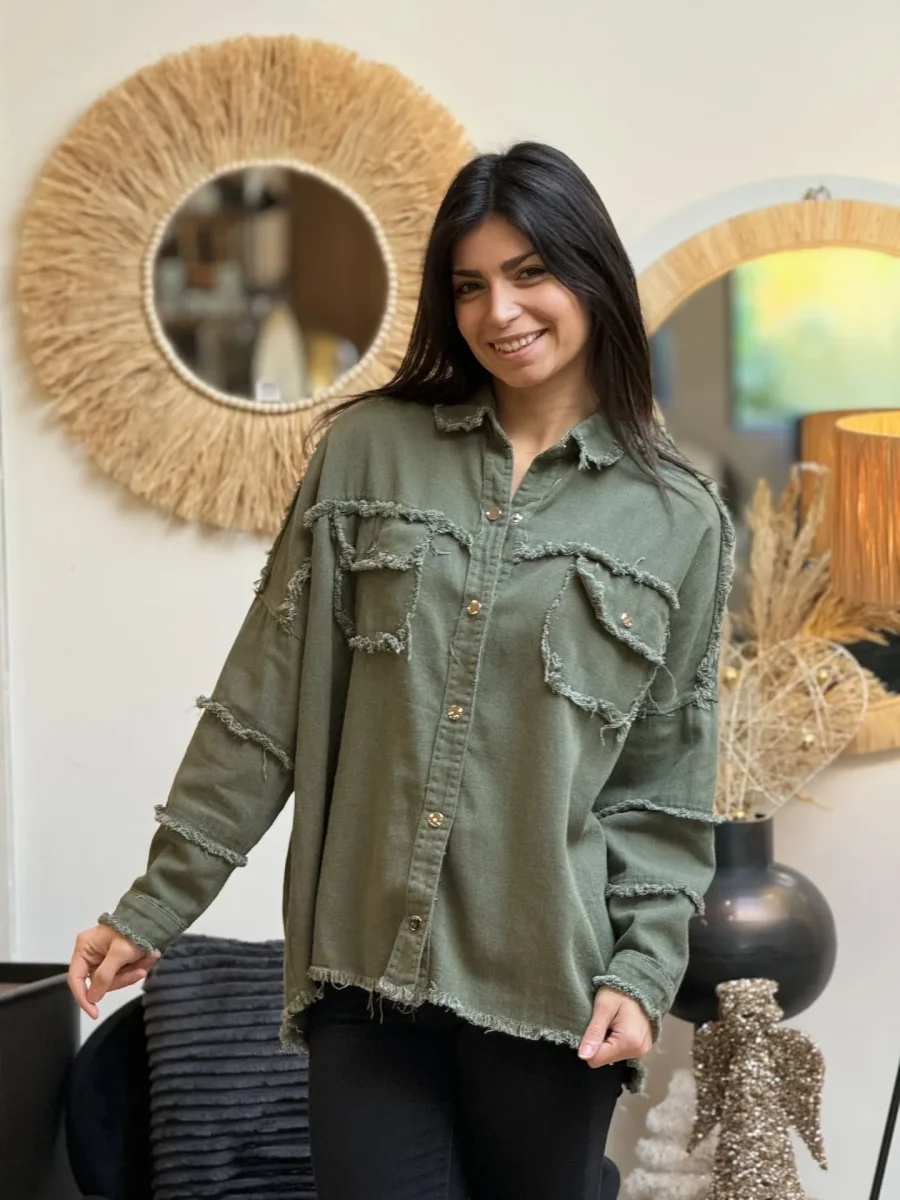 - Surchemise effet effilochés sur le bas, les poches et les manches