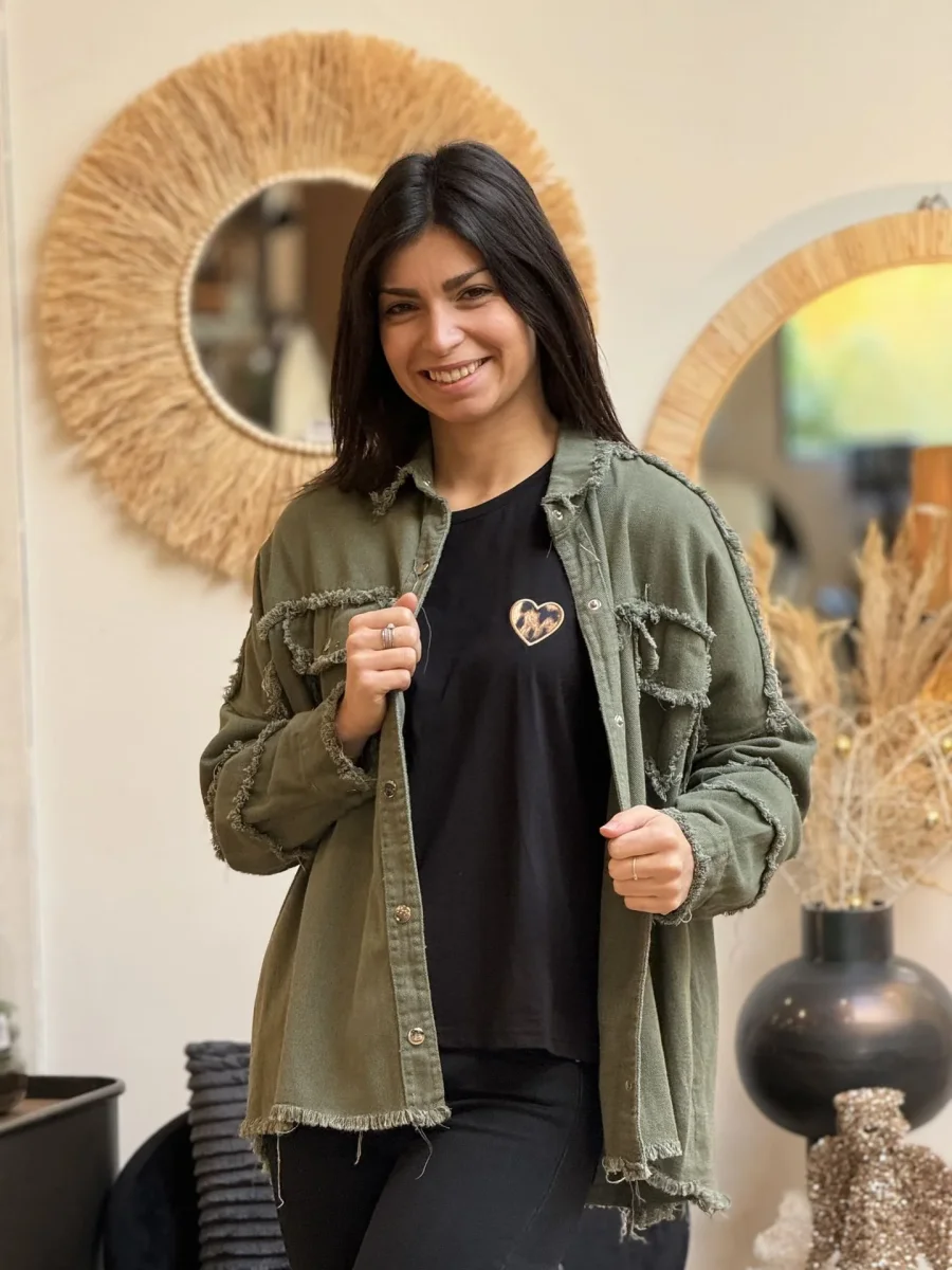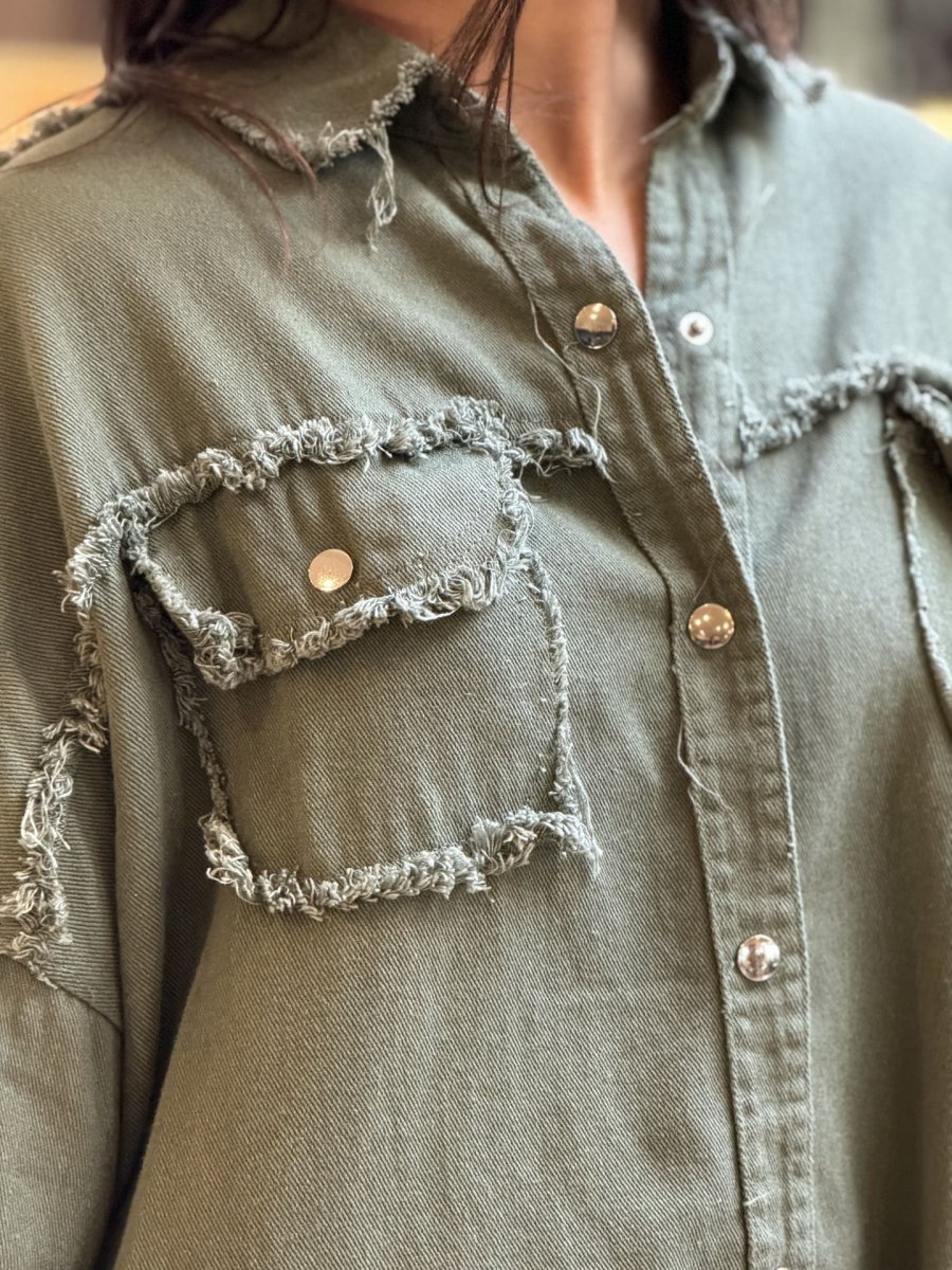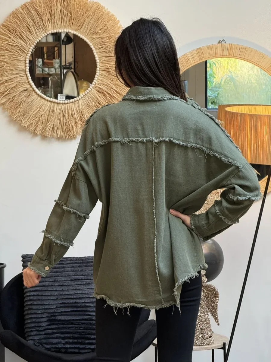 - Surchemise effet effilochés sur le bas, les poches et les manches