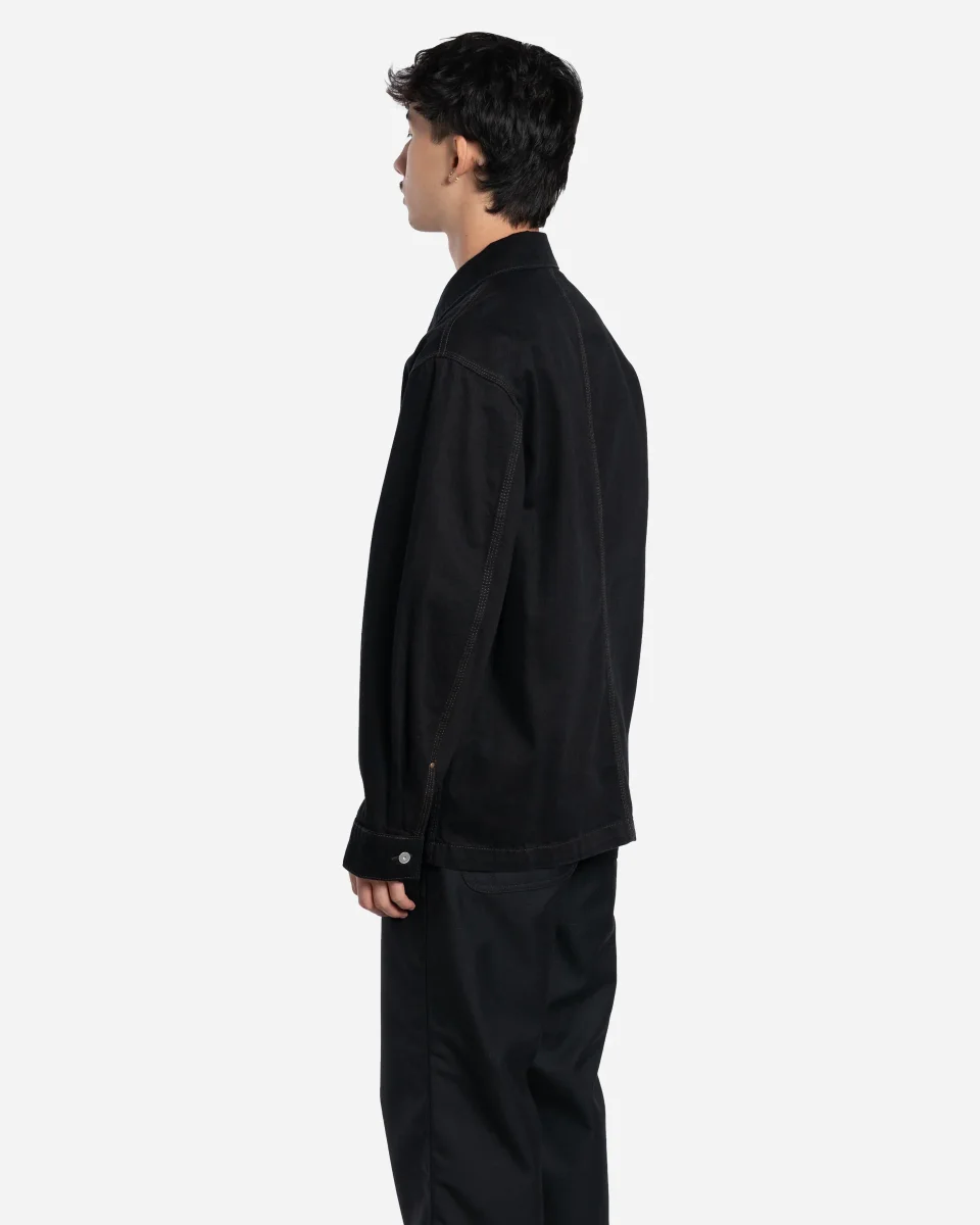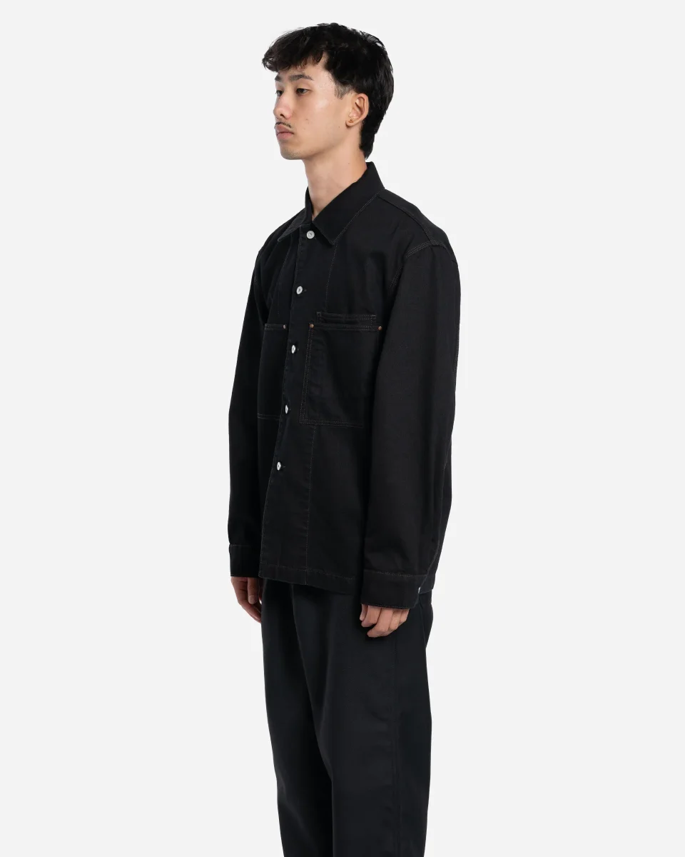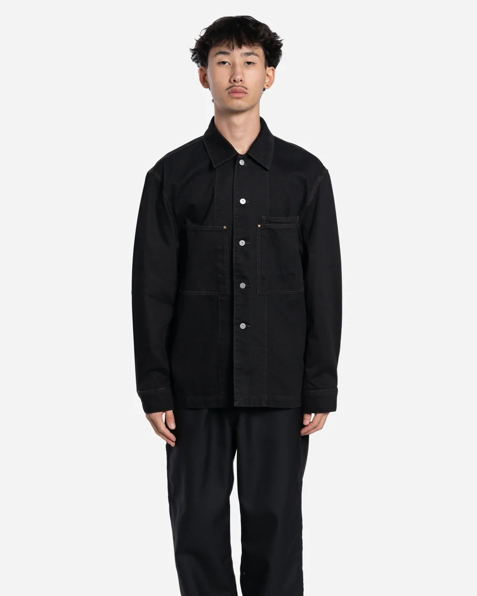 Surchemise, Lemaire, workwear, denim noir, coupe épurée, poches plaquées, boutons métalliques