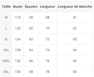 Sweat A Capuche Japonais guide des tailles