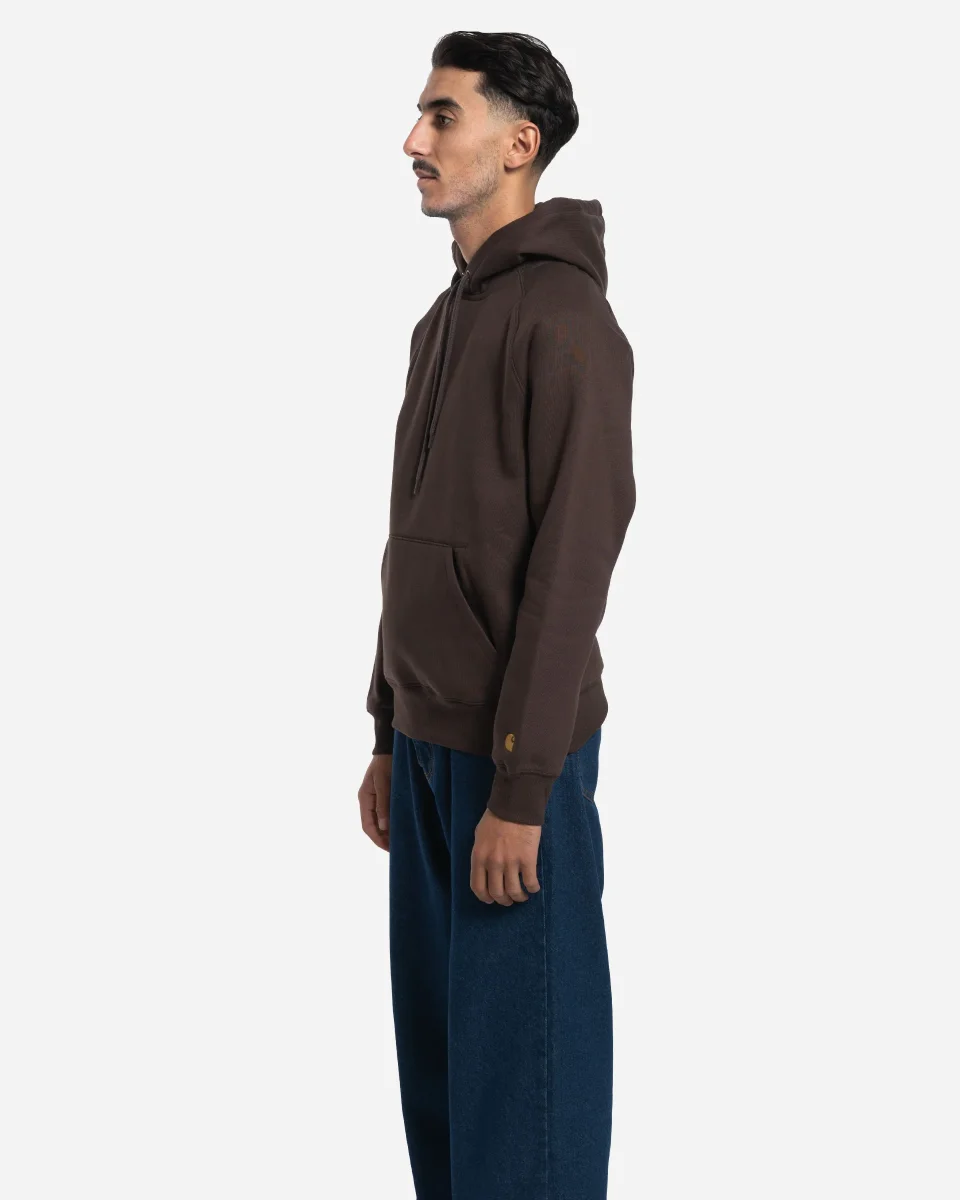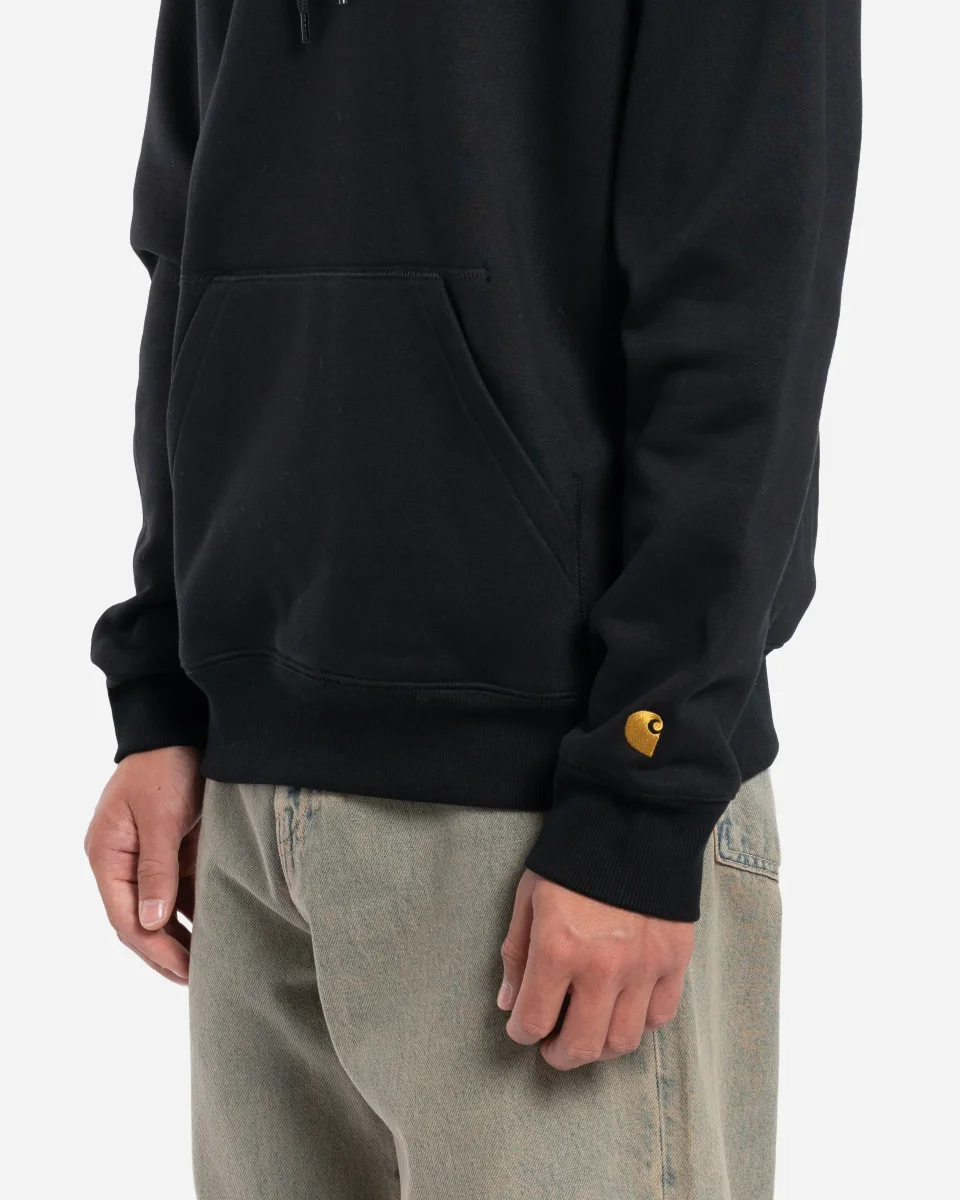 Le sweat à capuche Hooded Chase Sweat est confectionné dans un jersey lourd de coton et polyester. Il fait partie de notre Chase Program, qui regroupe des articles en jersey et comporte un motif « C » de Carhartt sur la manche gauche. Il inclut également des poignets et un ourlet côtelés, une capuche avec cordon et une poche kangourou.