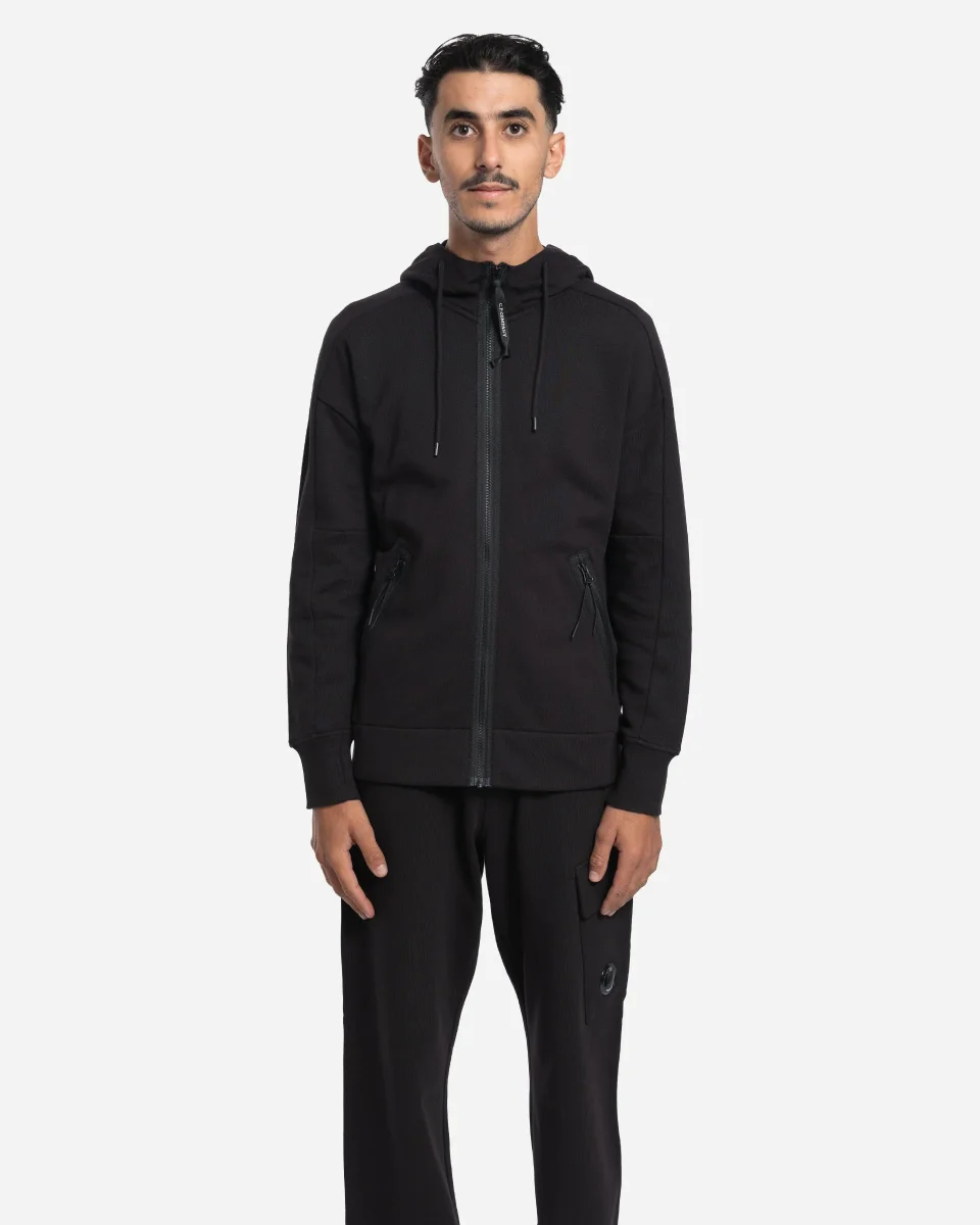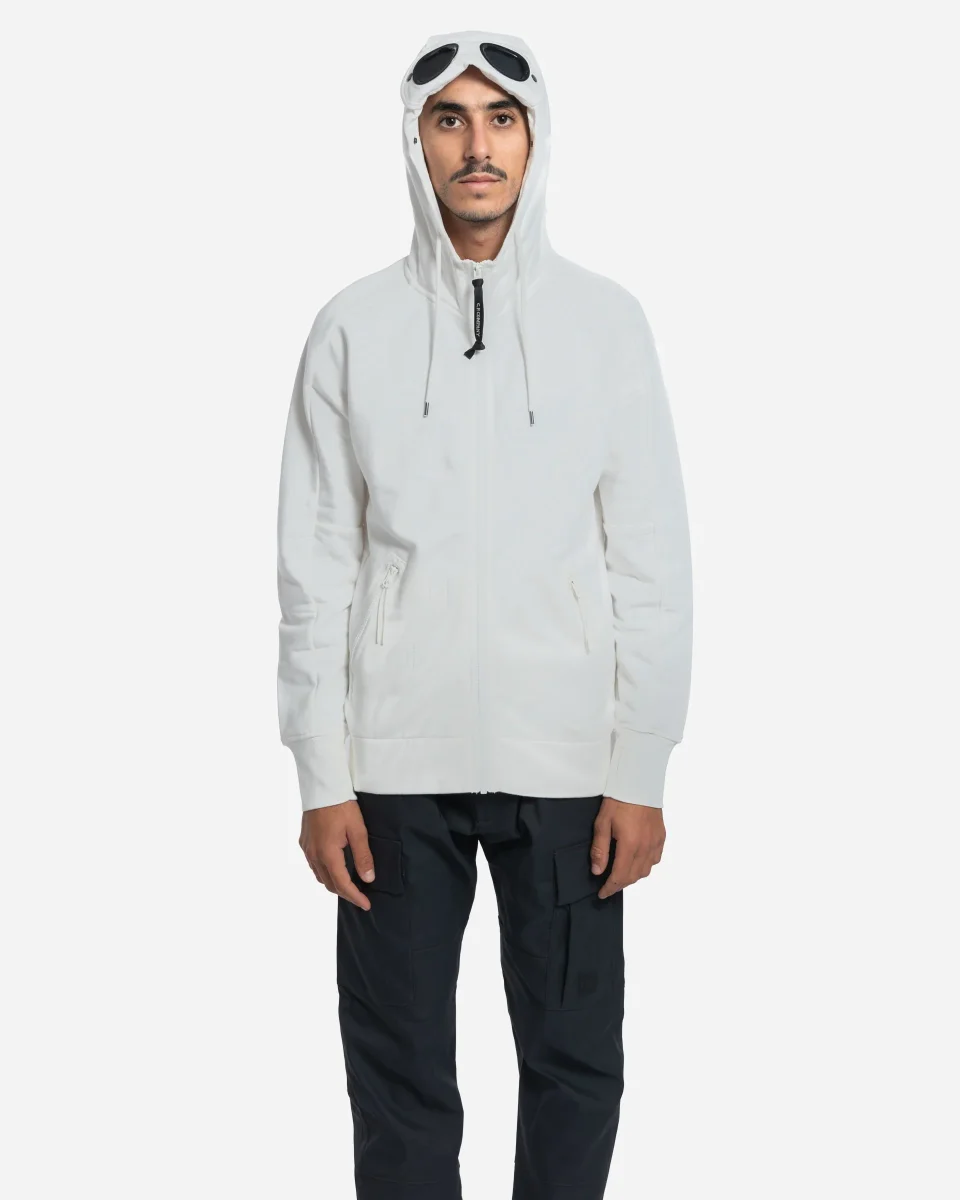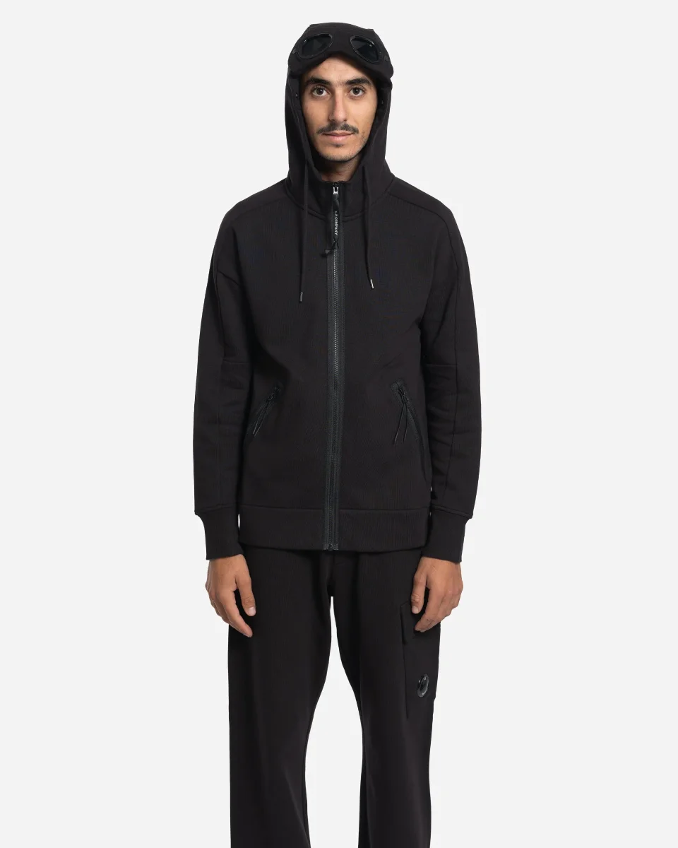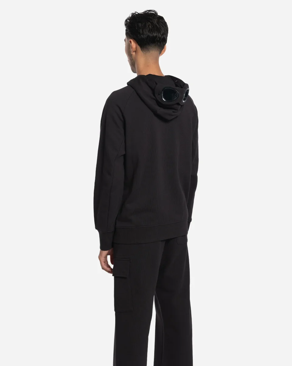 Sweat, capuche, Goggle, C.P. Company, polaire relief diagonal, coton brossé, capuche réglable, lunettes intégrées, fermetures éclair latérales, trou pouce, coupe régulière.