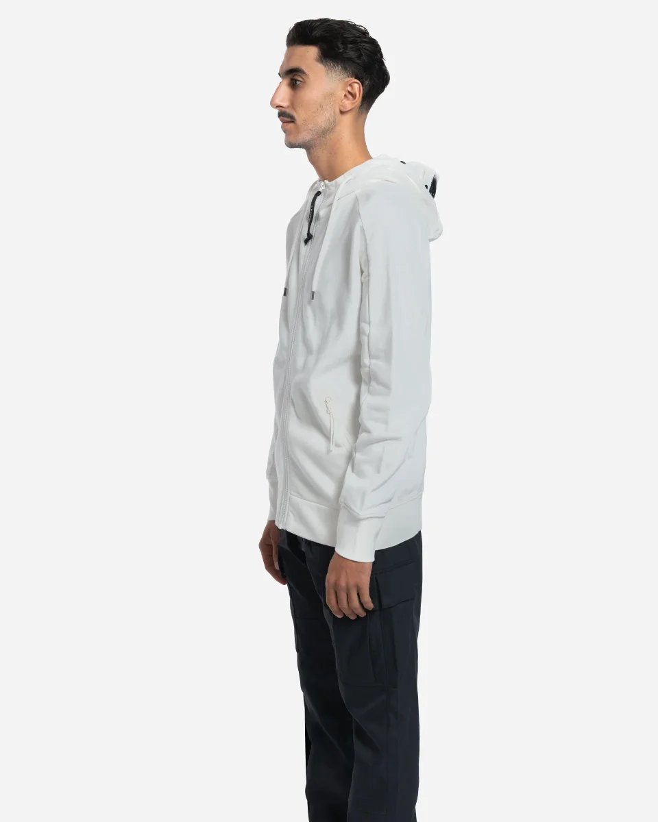 Sweat à capuche confectionné en polaire à relief diagonal, un coton brossé à tissage diagonal de poids moyen offrant douceur, confort et facilité de mouvement. Ce modèle est doté de la capuche Goggle réglable emblématique de C.P. Company, signature iconique de la marque italienne avec ses lunettes intégrées. Équipé de fermetures éclair latérales pour un ajustement personnalisé et de poignets côtelés avec trou pour le pouce, détail technique moderne. L’ourlet côtelé complète cette finition soignée. Coupe régulière pour un style urbain décontracté.