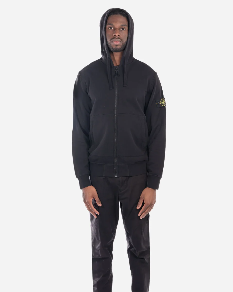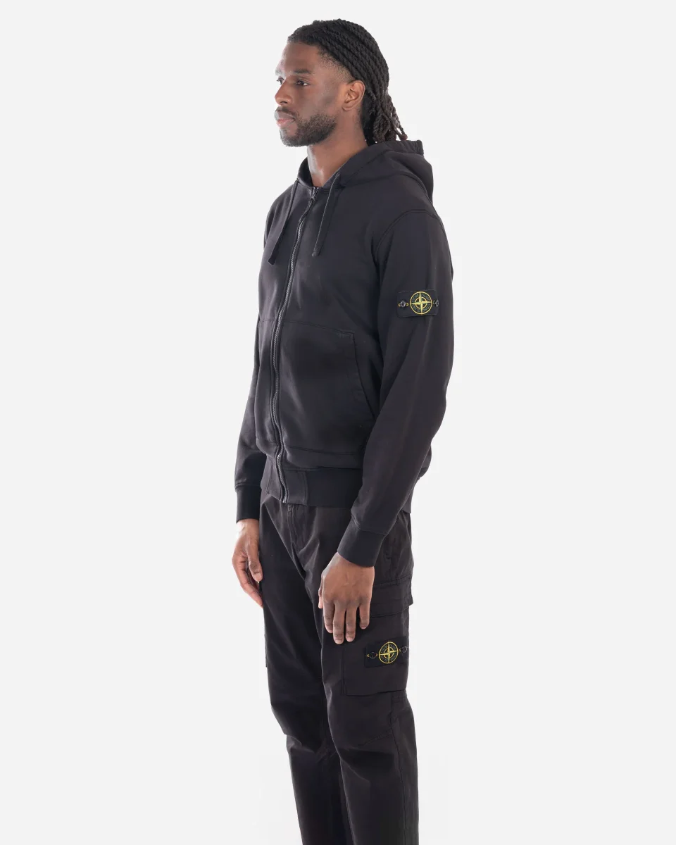 Sweat à capuche, Stone Island, sweat zippé, logo manche, molleton, vêtement noir, homme