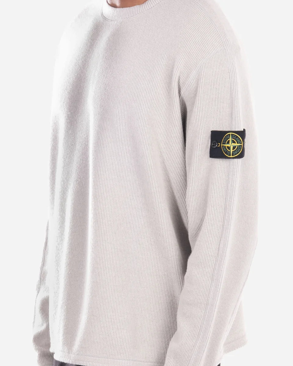Sweat-shirt, Stone Island, ribbed, laine nylon, côtelé, badge Stone Island, empiècement dos, bande nylon, teint en pièce, coupe confort, technique.
