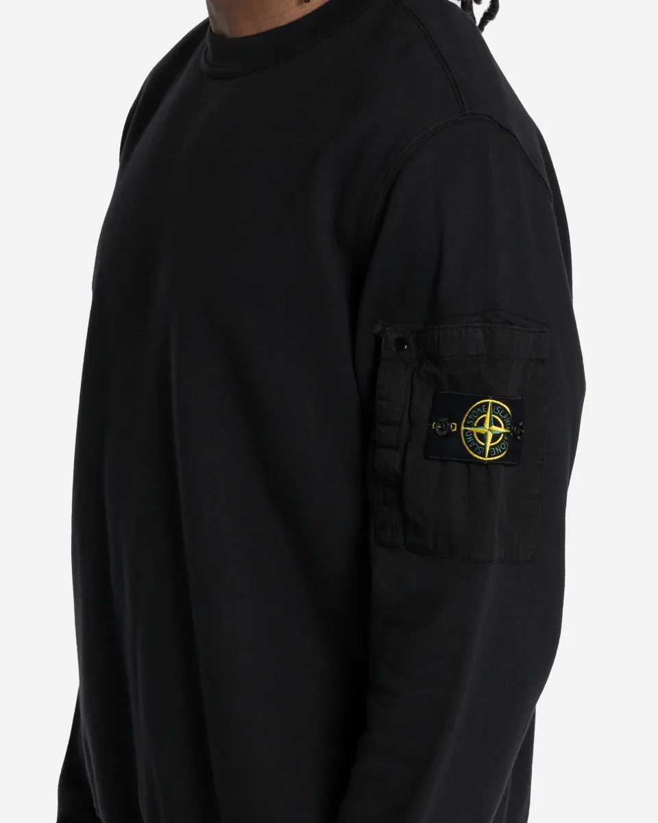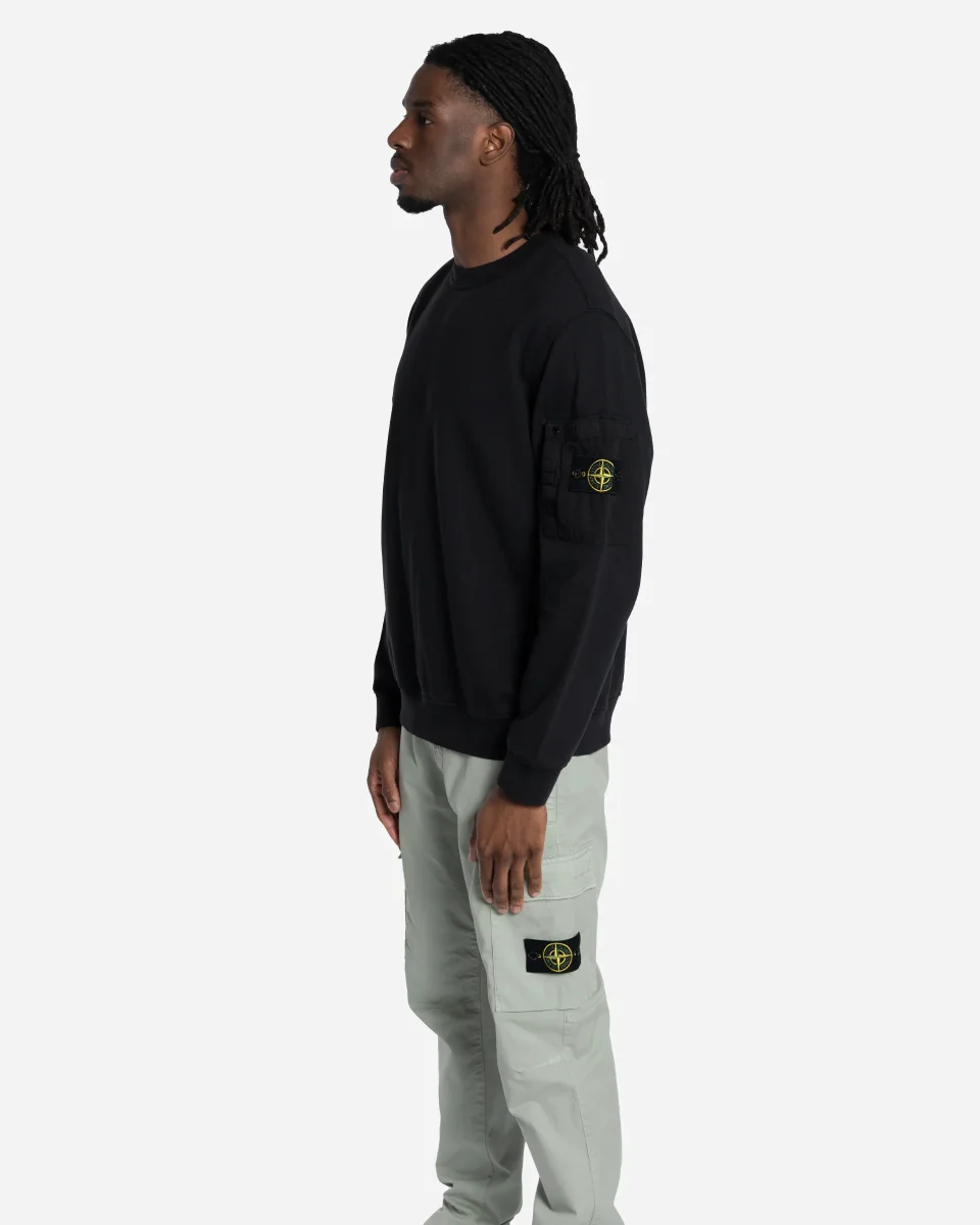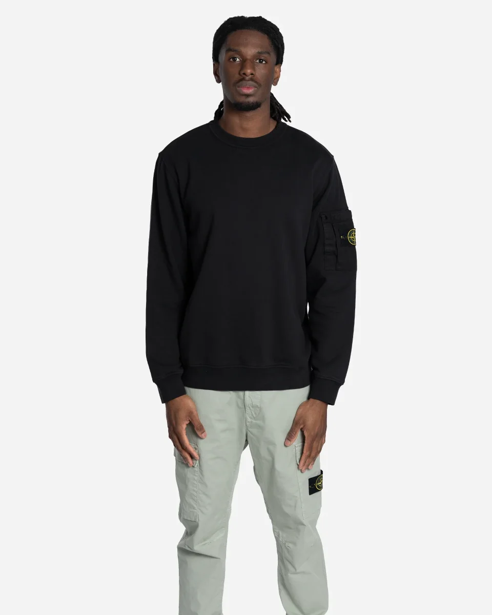 Ce sweat-shirt à col ras-du-cou est confectionné dans un molleton de coton de poids moyen, offrant un confort optimal pour un usage quotidien. Le vêtement bénéficie d’un procédé de teinture en pièce qui lui confère une profondeur de couleur intense. Il se distingue par une poche plaquée exclusive sur la manche gauche, réalisée en coton ripstop résistant. Cette poche fonctionnelle présente un pli décoratif, une fermeture par scratch et bouton-pression, ainsi que l’emblématique badge Stone Island. Sa coupe regular est complétée par des finitions côtelées et élastiquées au col, aux poignets et à la base pour une tenue impeccable.
