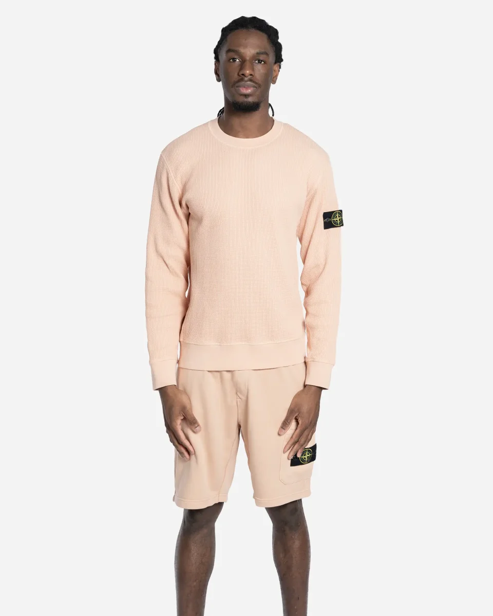 Sweatshirt Ras-du-Cou en Molleton Gaufré Plaster Pink