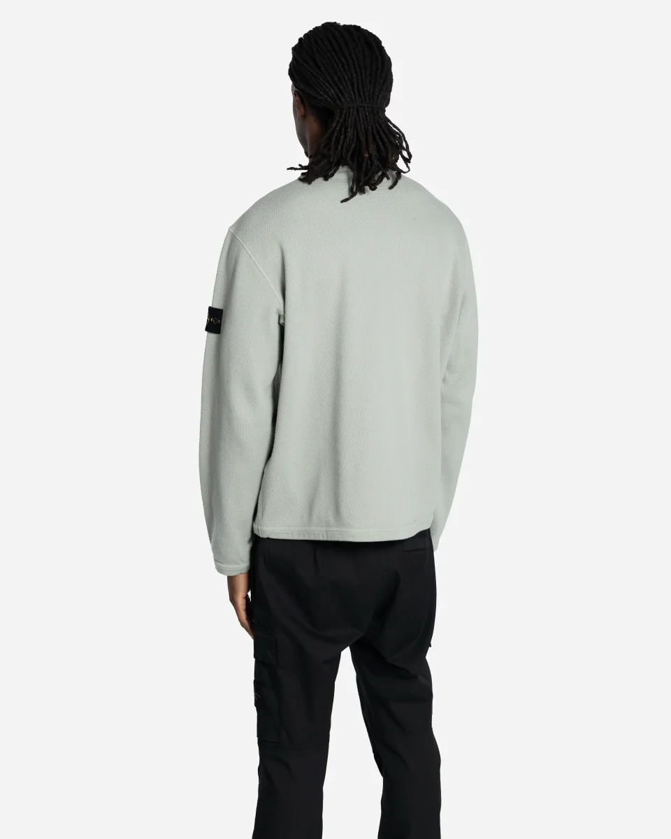 Sweat-shirt, Stone Island, Coton biologique, Vert sauge, Maille filet, Teint en pièce, Badge boussole, Regular fit, Sportswear, Épais